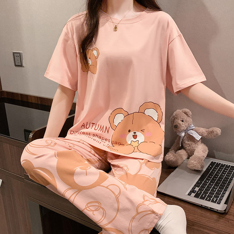短袖长裤睡衣女夏天纯棉可爱熊春秋季2022年新款夏季可外穿夏款