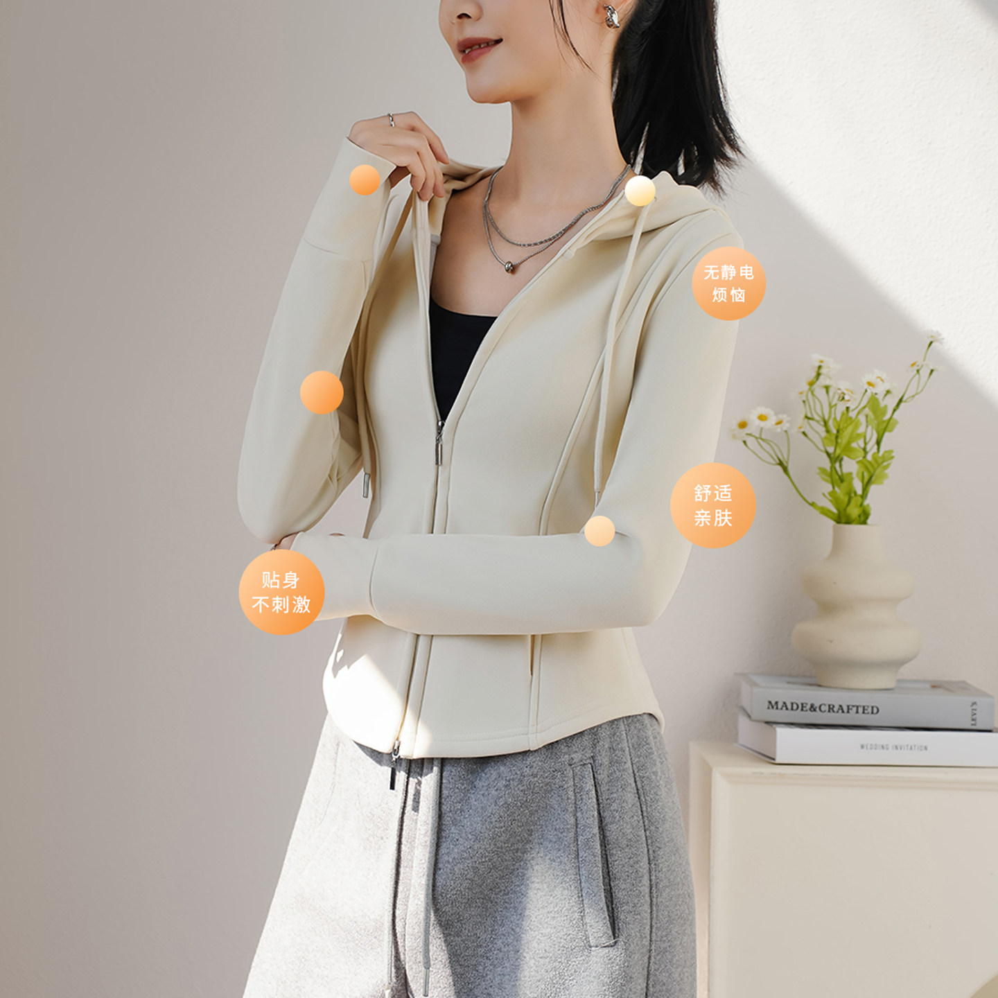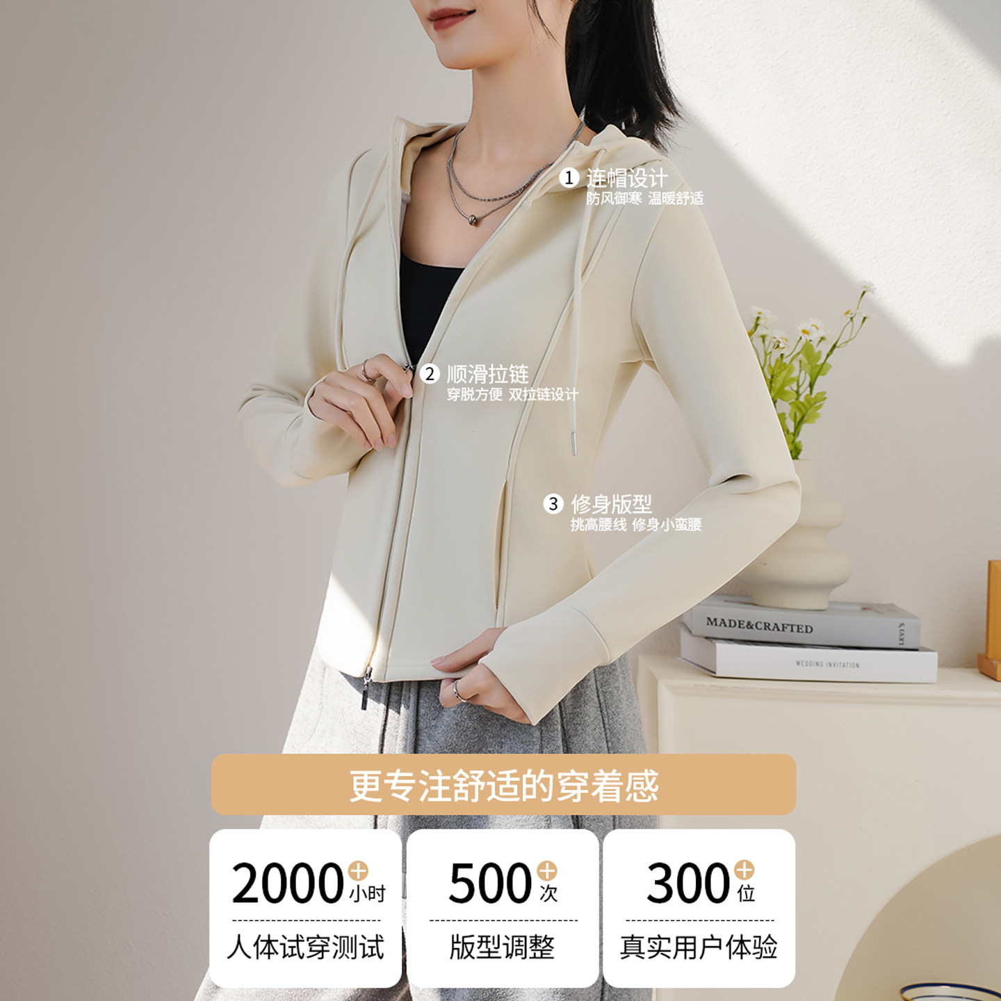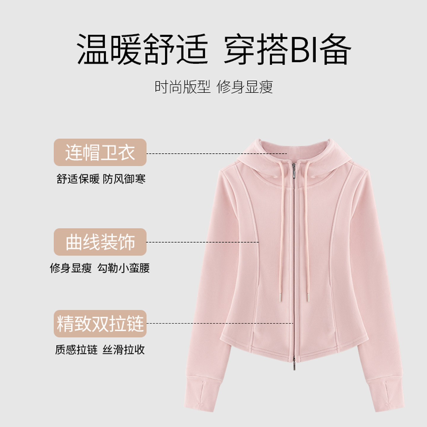修身显瘦连帽运动瑜伽服户外休闲冲锋衣卫衣秋冬季保暖短款外套女