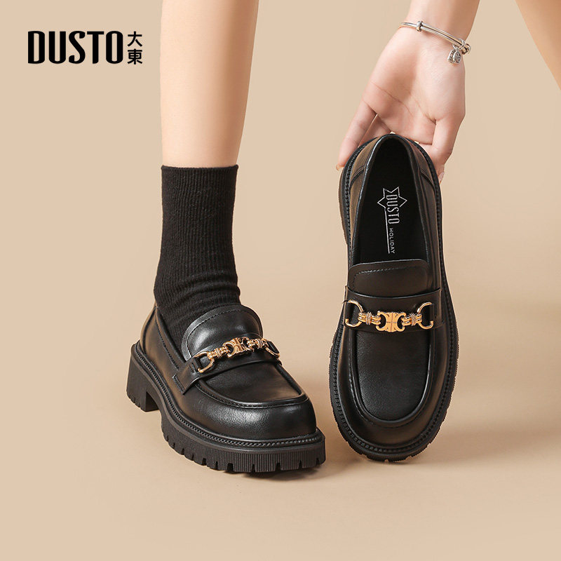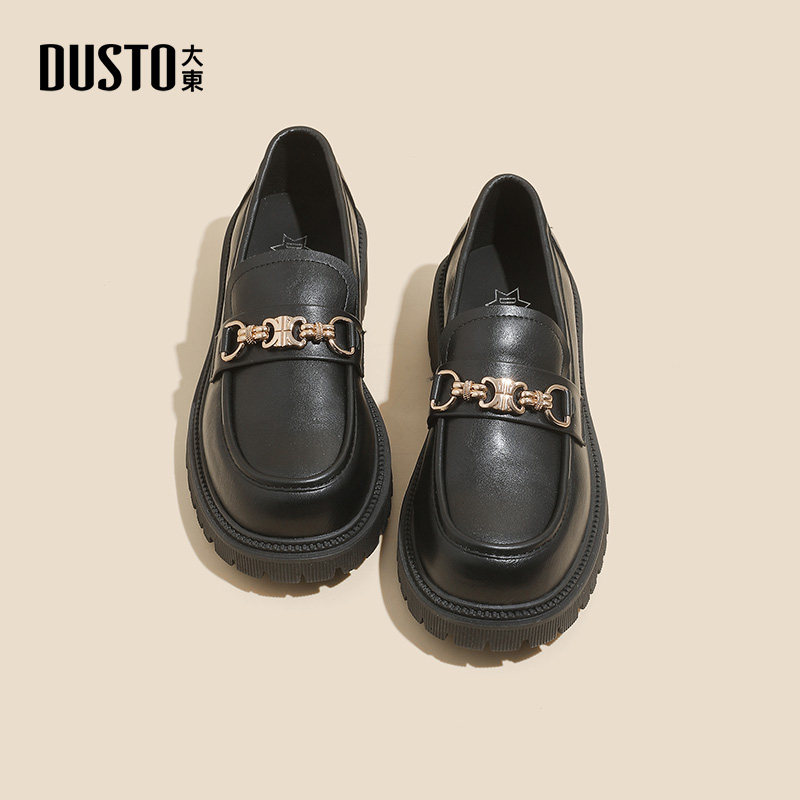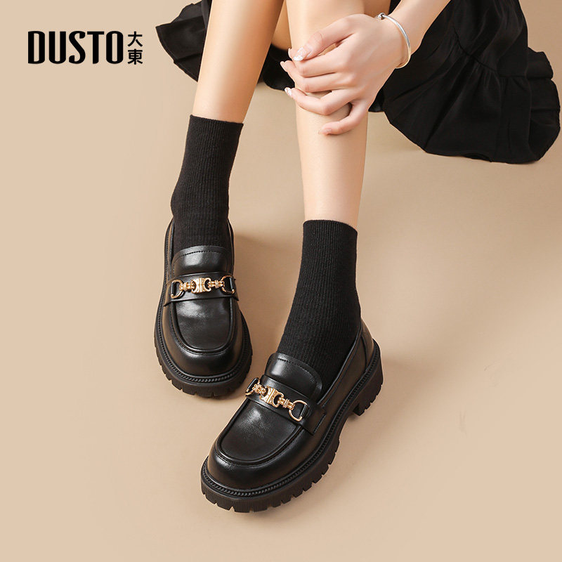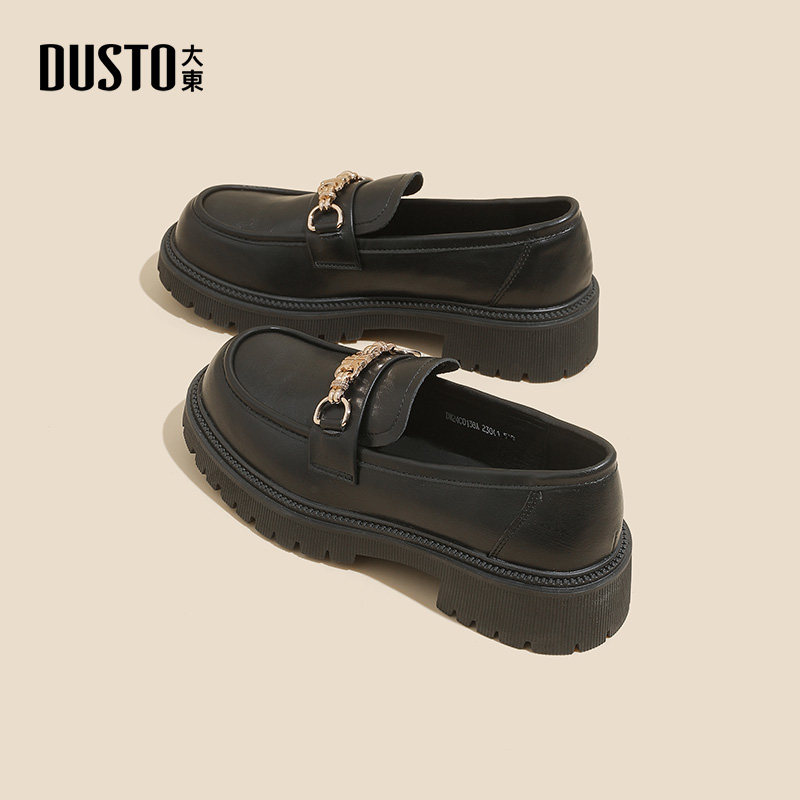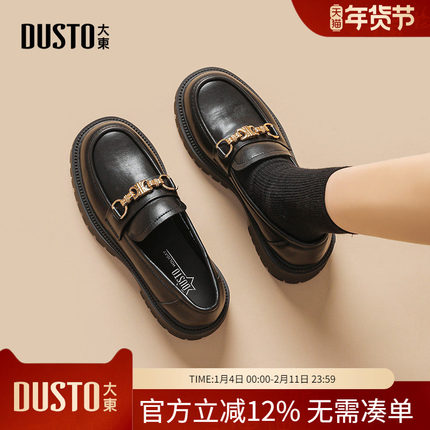 大东dd黑色乐福鞋女春秋季2026新款低跟单鞋圆头女鞋软底小皮鞋子