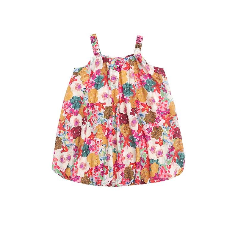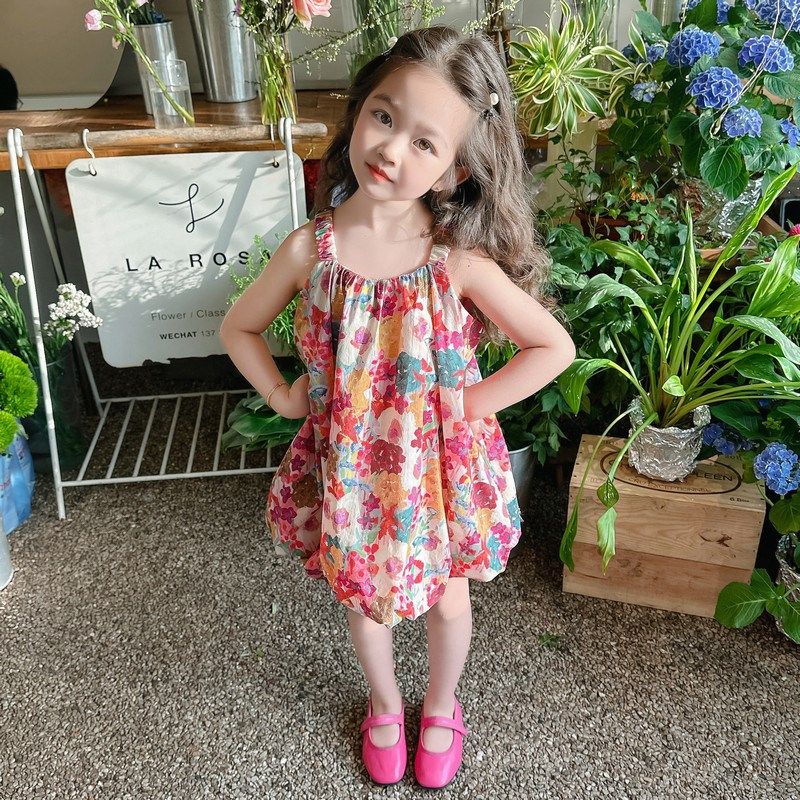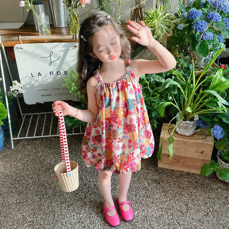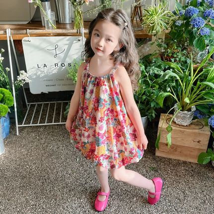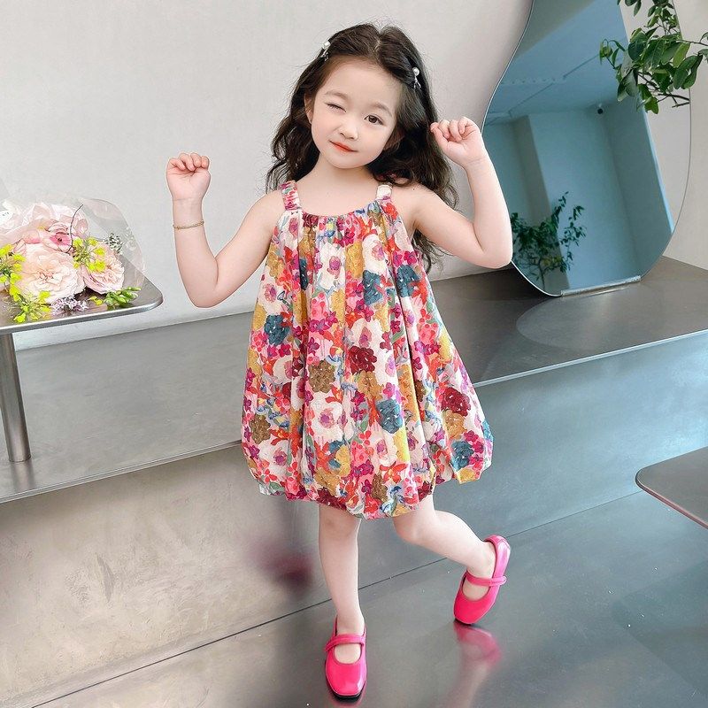 儿童碎花灯笼连衣裙2024新款小童吊带裙清新女童夏装洋气背心裙子
