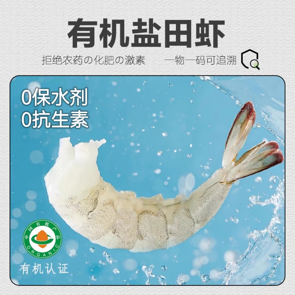 有机盐田虾仁无冰大号虾肉低脂去虾线有机0抗0保水剂虾仁儿童辅食
