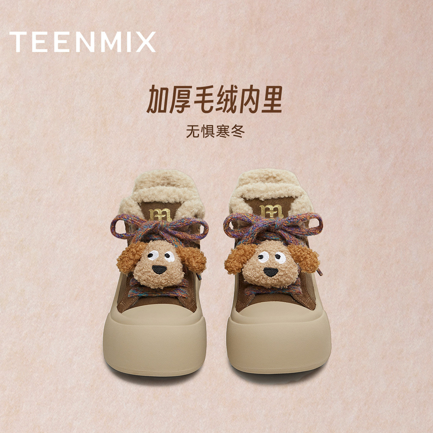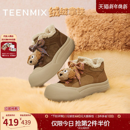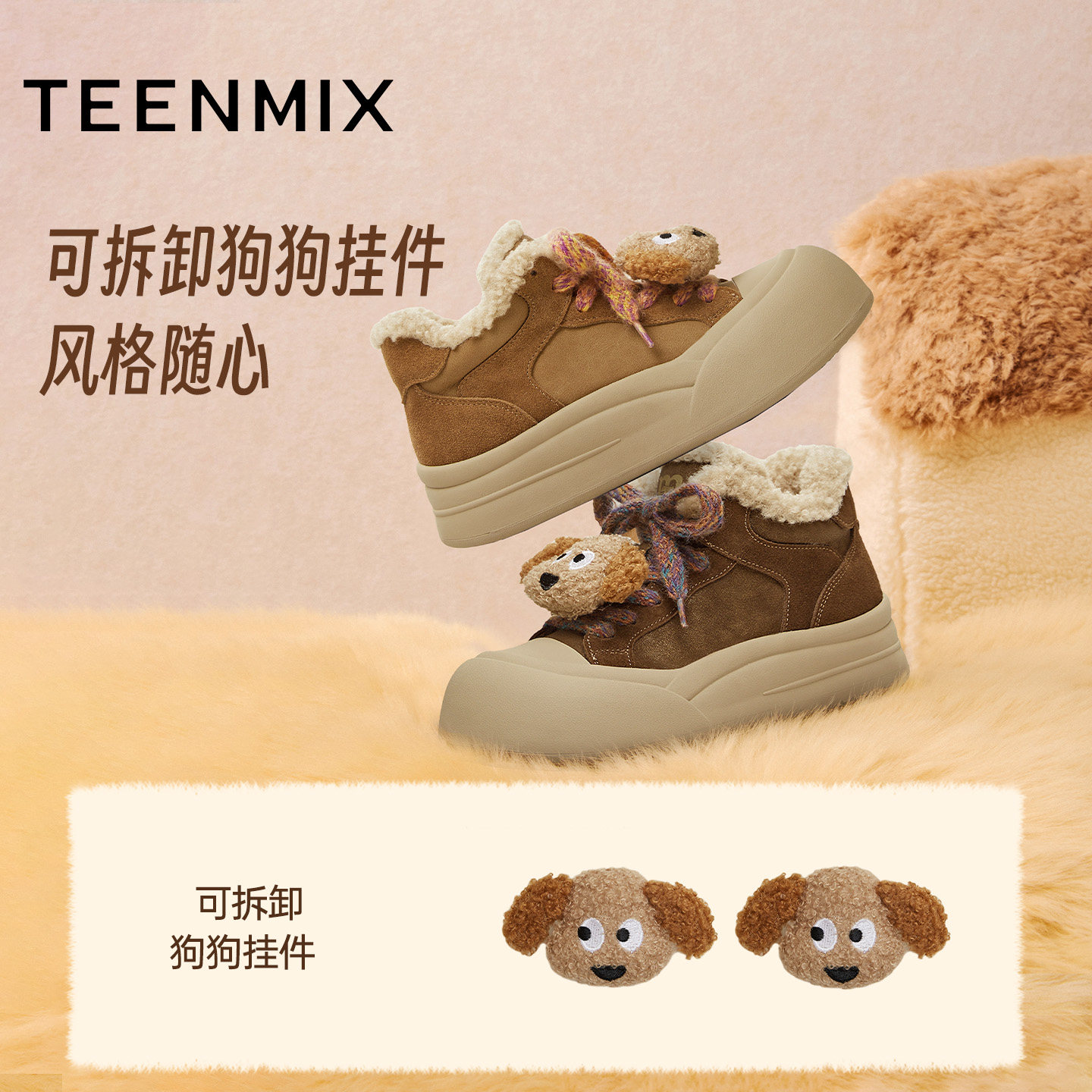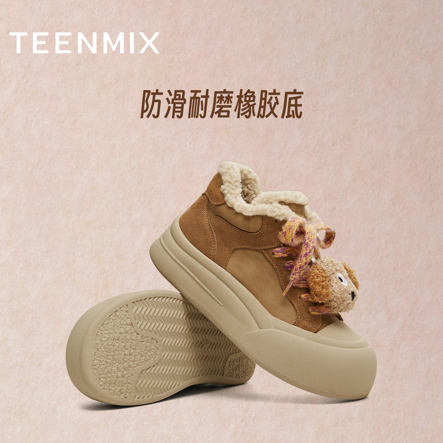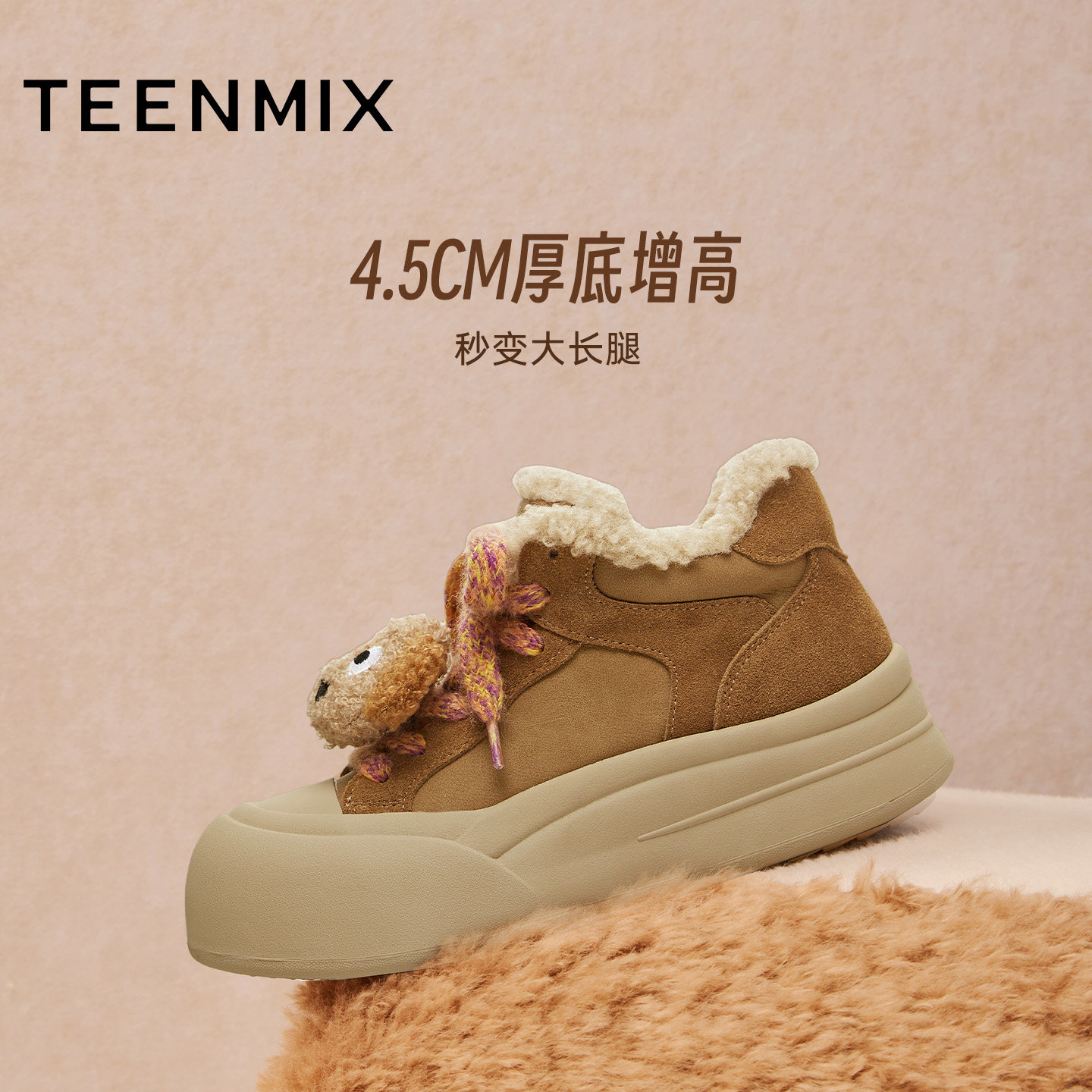 天美意厚底增高加绒保暖毛毛鞋棉鞋女雪地靴短靴板鞋2025冬季新款