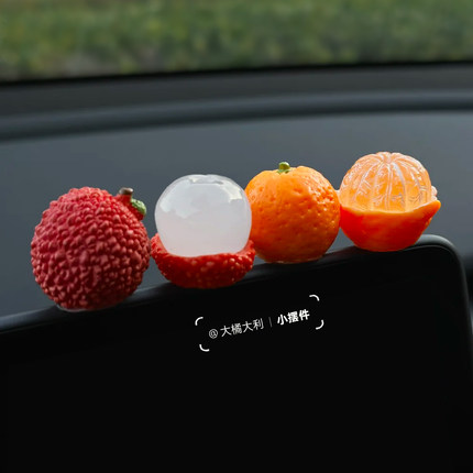 大橘大荔车载中控台摆件顺顺荔荔水果汽车荔枝新年年味车载装饰贴