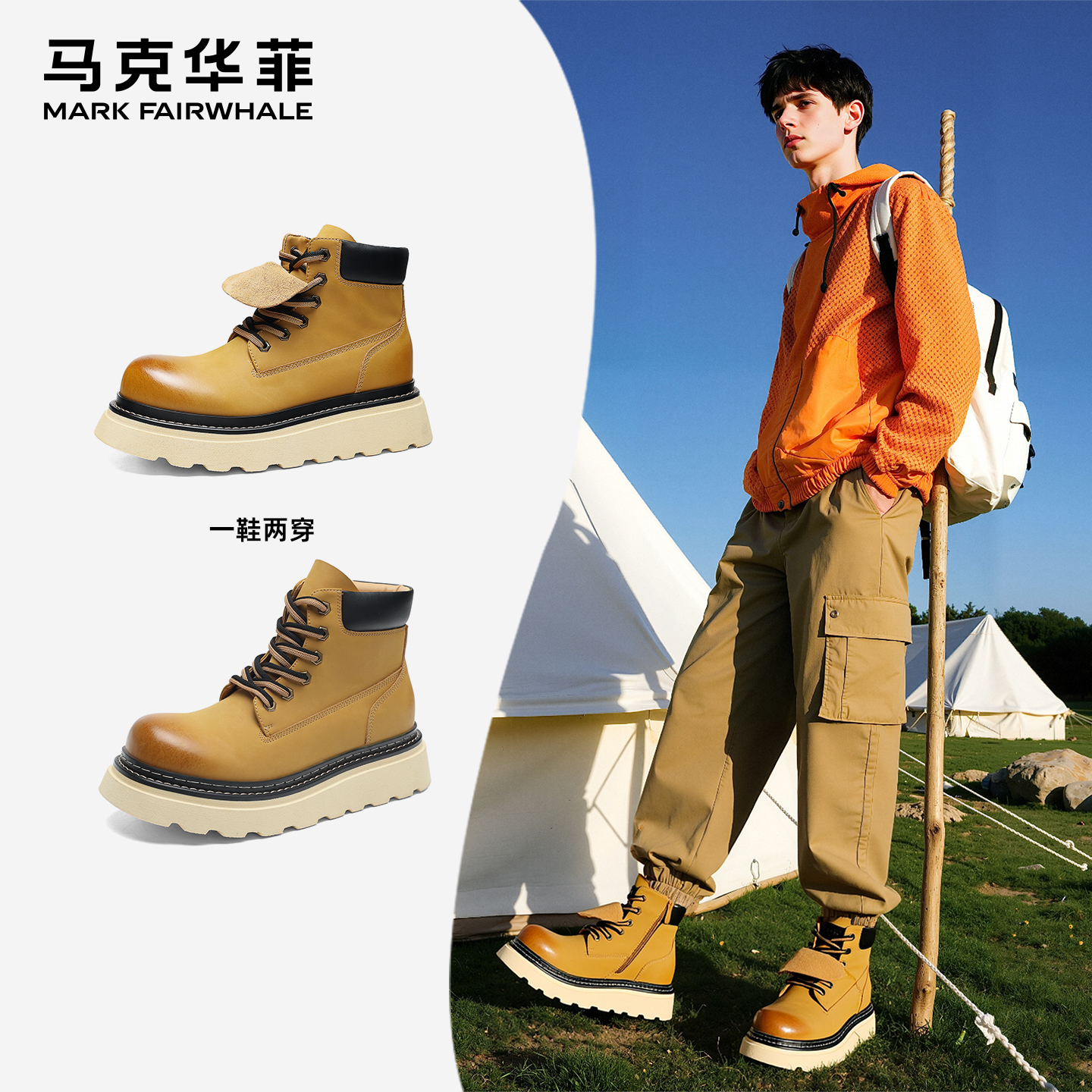 马克华菲马丁靴男款2025新款冬季麦芒男士大黄靴加绒棉鞋雪地靴男