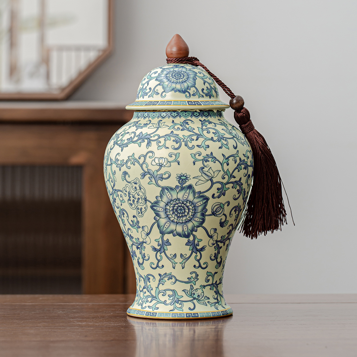 青花汝窑葫芦茶叶罐陶瓷密封罐家用防潮储物罐精品高档存茶罐中式