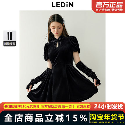 乐町精致新中式丝绒连衣裙春季新款年会短裙蝴蝶节扣国风裙