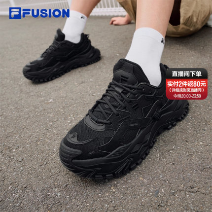 FILA FUSION 斐乐硬糖男鞋黑武士厚底增高鞋休闲运动鞋黑色老爹鞋