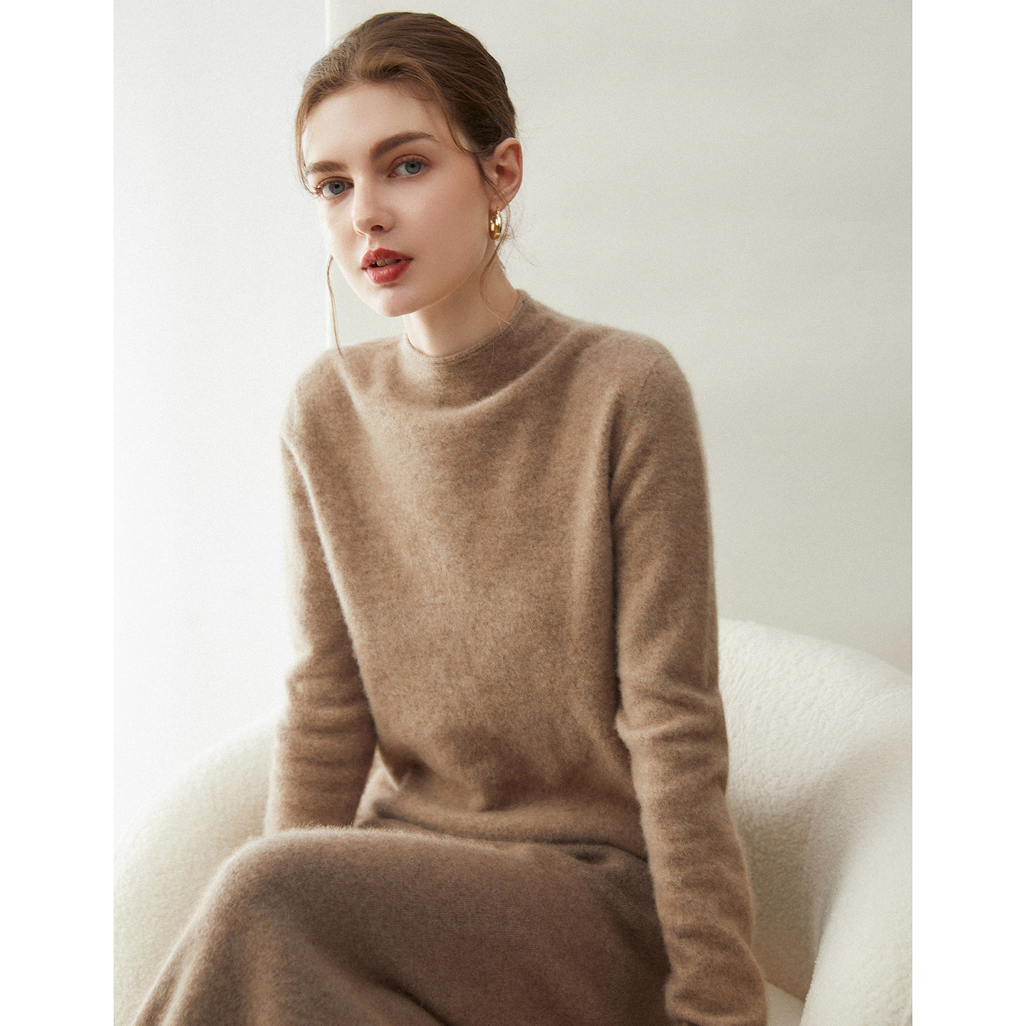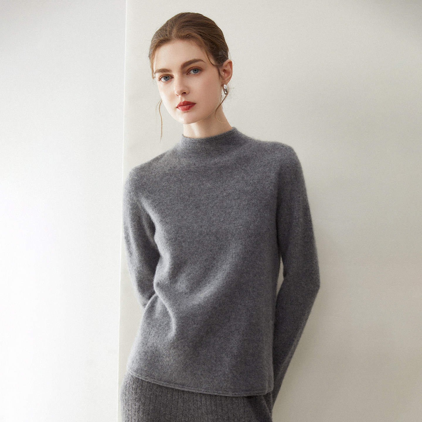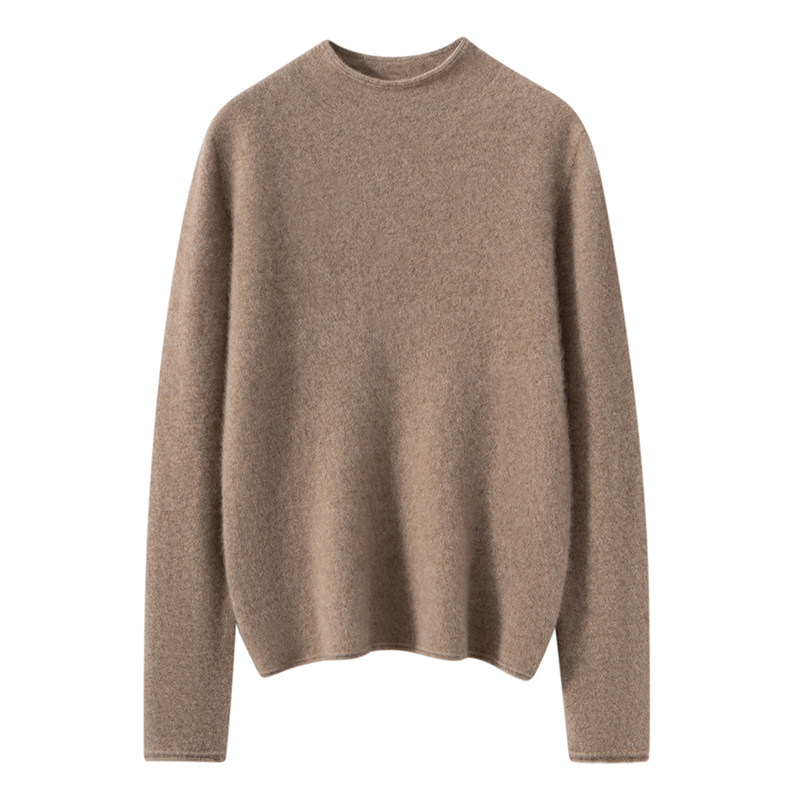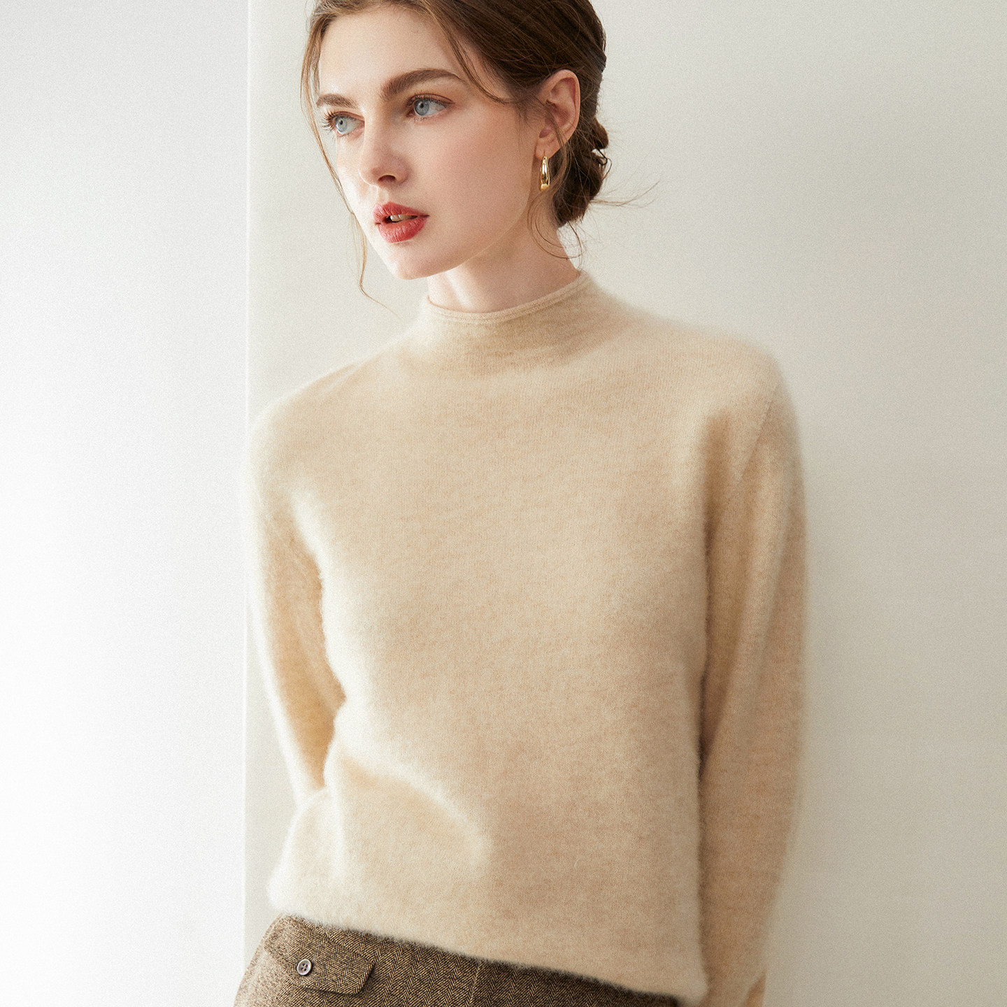 25秋冬新款100%山羊绒卷边半高领羊绒衫女软糯针织内搭毛衣打底衫