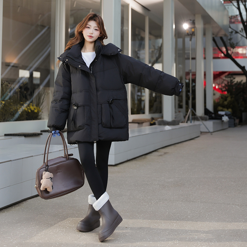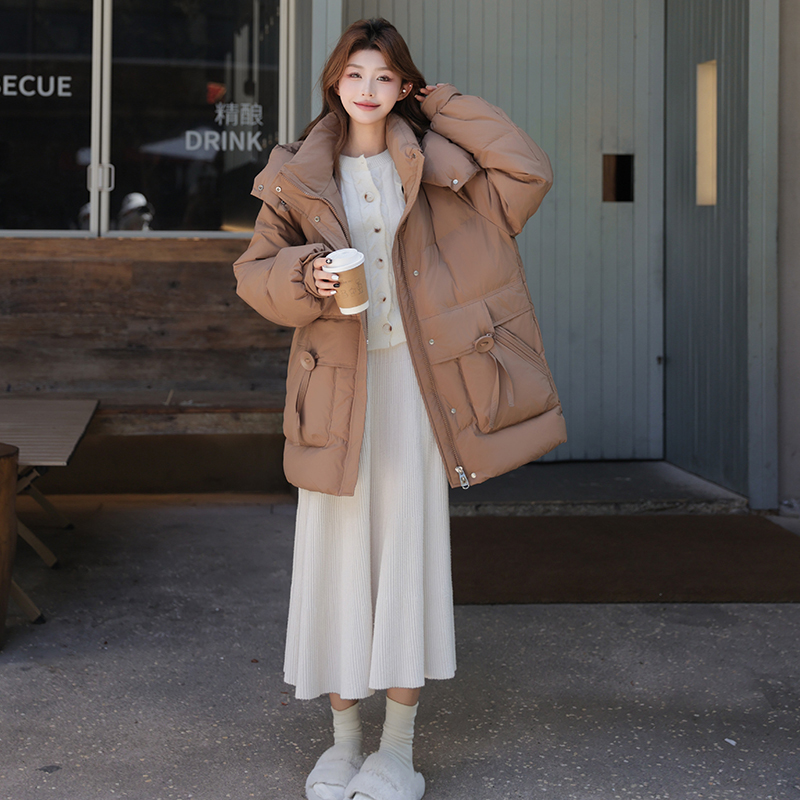 大码羽绒服女中长款连帽白鸭绒外套2025年冬季显瘦90白鸭绒面包服