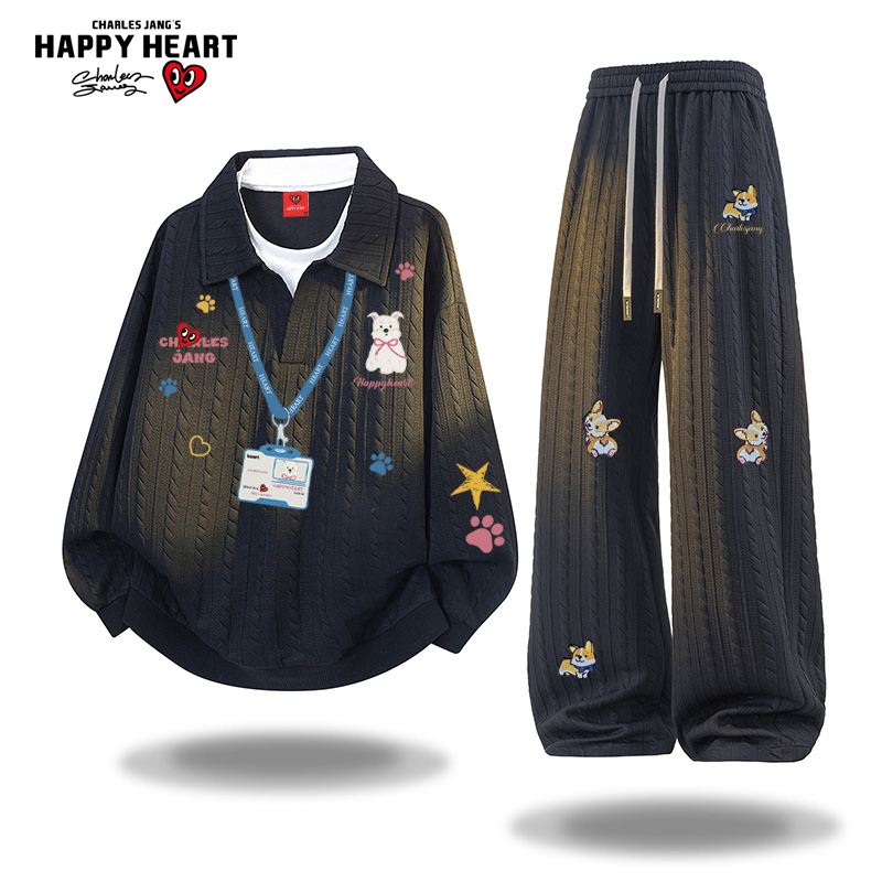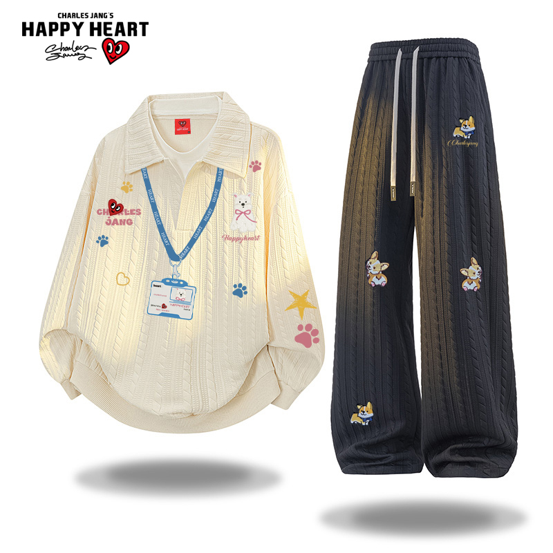 查尔斯桃心学院风领带翻领卫衣套装男女秋冬季新款休闲宽松长裤子