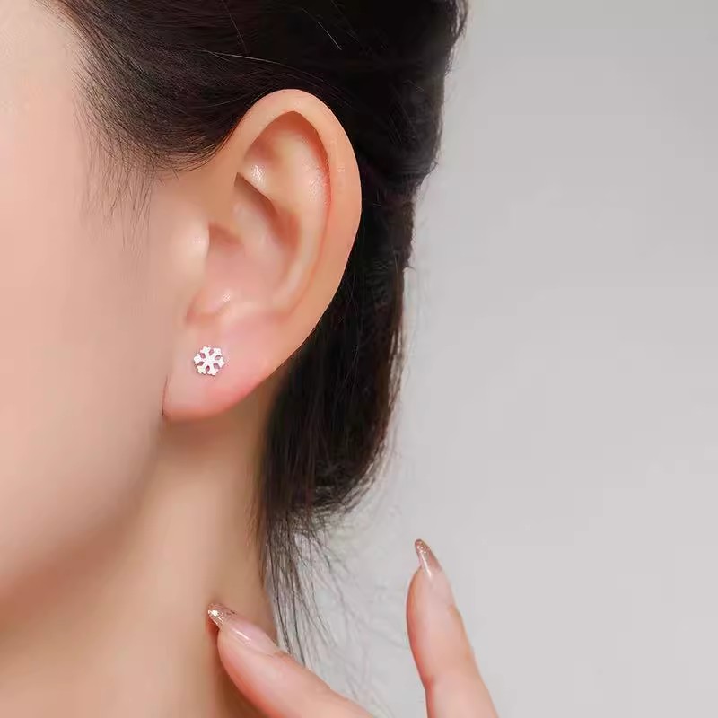 纯银耳钉养耳洞时尚雪花弯针免摘