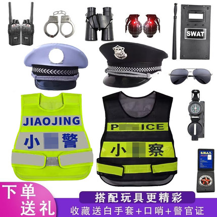 儿童警察服黑猫警长帽子交警大盖帽小孩电动玩具枪套装幼儿园男孩