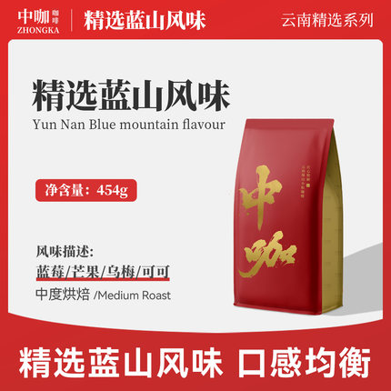 中咖精品 精选蓝山咖啡豆 云南小粒咖啡可现磨黑咖啡粉 454g