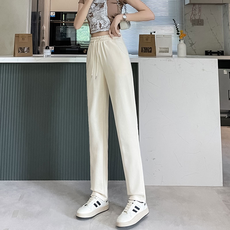 藏青色空气层加长裤子女高个子175超长版夏季直筒大码运动休闲裤