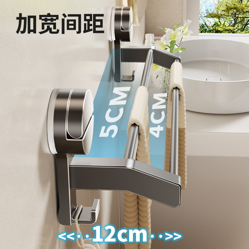 吸盘毛巾架卫生间免打孔浴室伸缩毛巾杆置物架洗手间浴巾收纳挂架