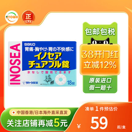 香港版佐藤胃适尔咀嚼片18片胃酸过多反酸烧心胃胀痛胃炎日本胃药
