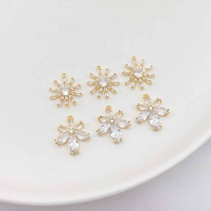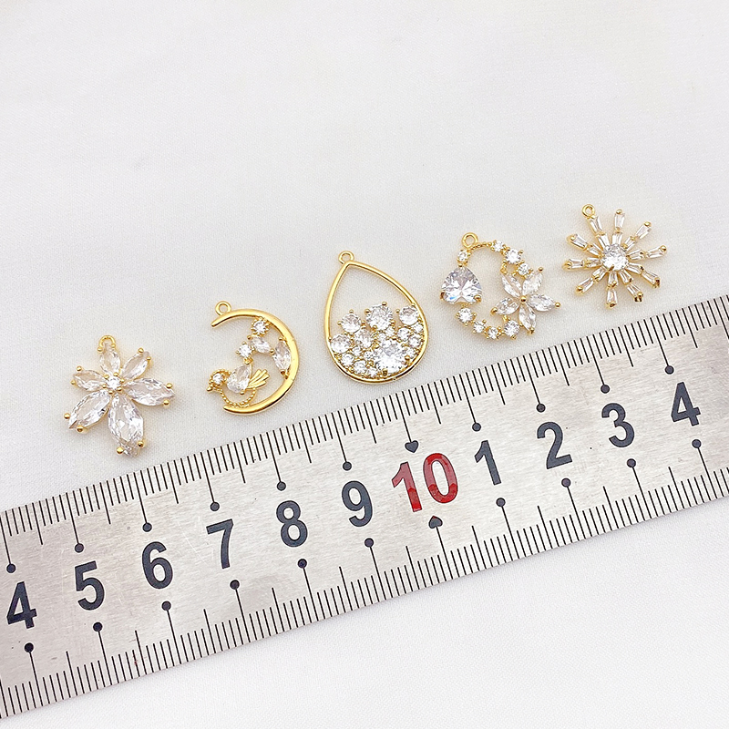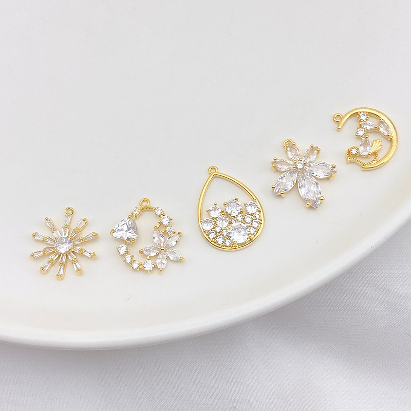18K包金保色锆石水滴花朵吊坠月亮小鸟挂件diy手链项链耳饰品配件