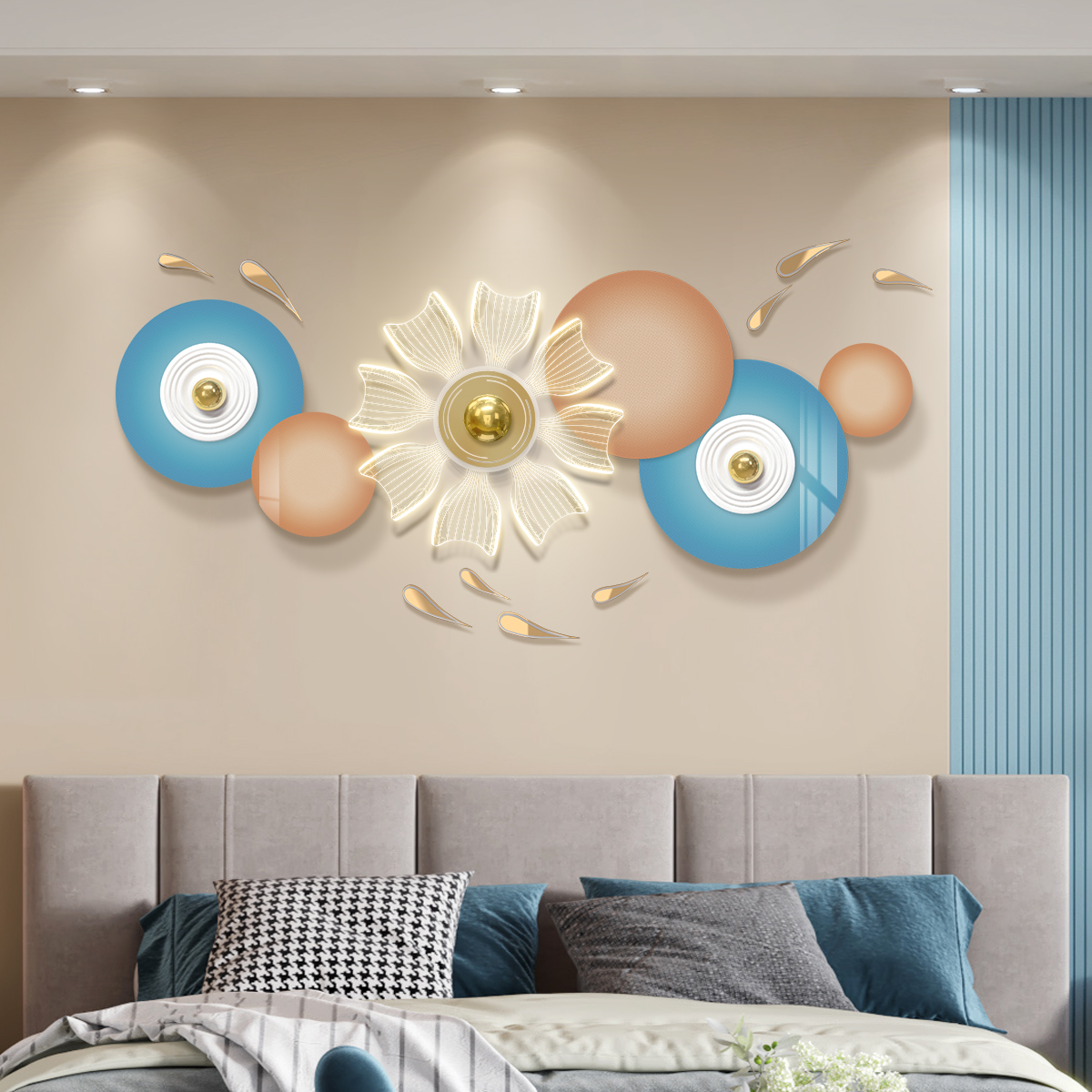 现代轻奢客厅装饰画创意沙发背景墙北欧卧室玄关灯光墙壁立体挂画