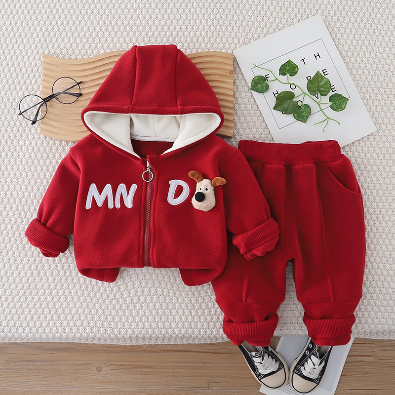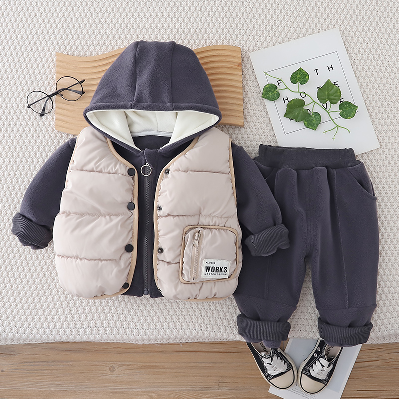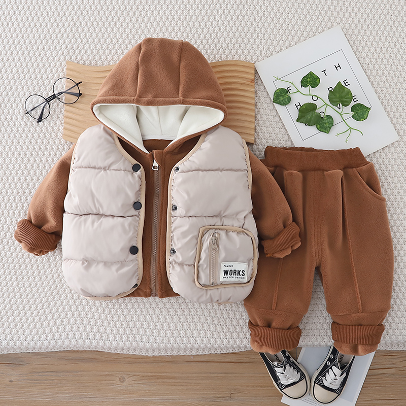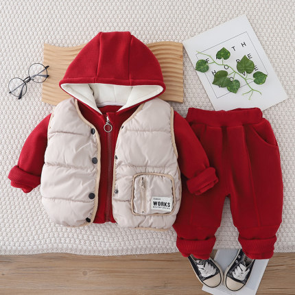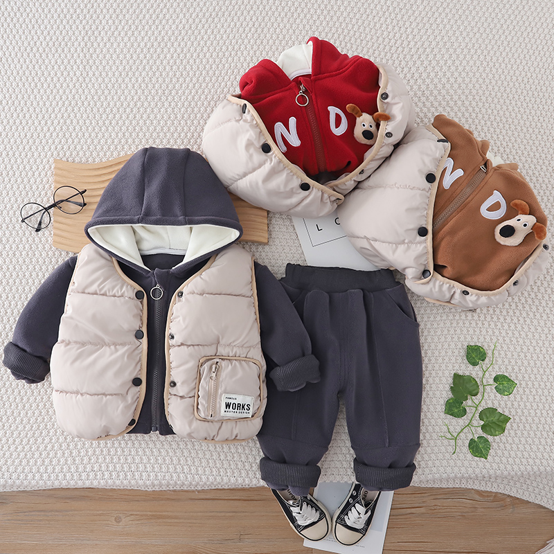 男童冬装套装新款儿童装连帽棉衣洋气宝宝卡通加绒加厚冬季三件套