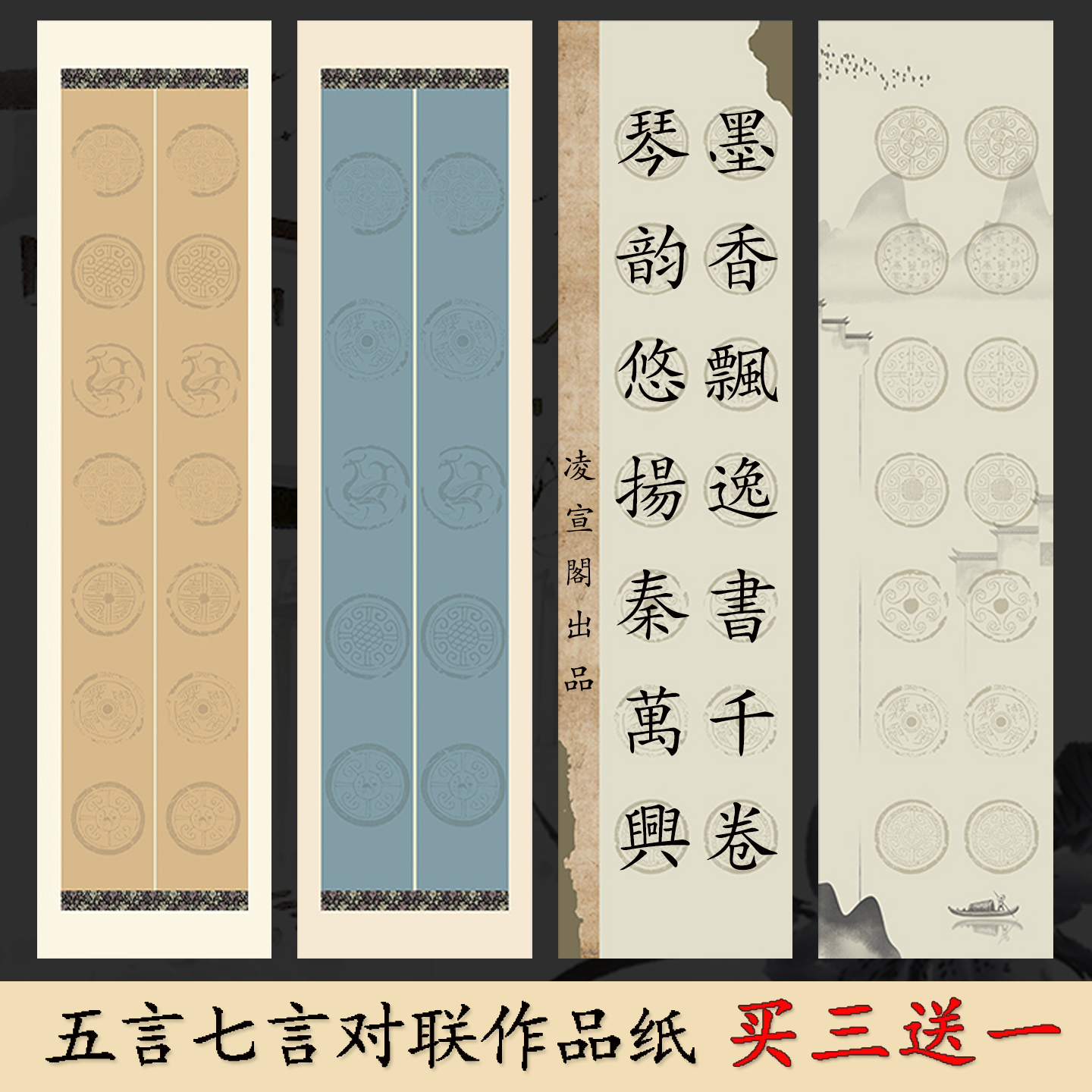 四尺对开微喷蜡染瓦当对联宣纸五言七言对联专用纸毛笔书法作品纸楹联条屏10字14字比赛创作专用纸半生半熟