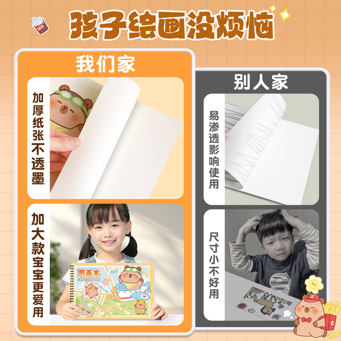 卡皮巴拉加厚空白图画本画画本绘画本幼儿园儿童小学生专用男女孩画册涂色美术本子不透色素描本一二年级速写