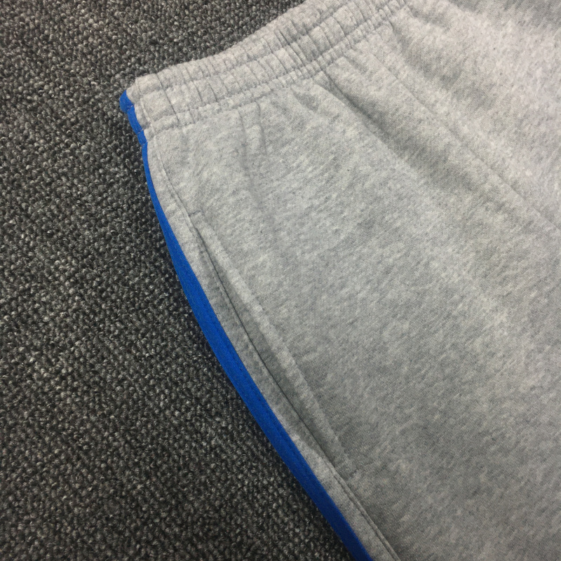 定制全棉夏季浅灰镶孔雀蓝杠中小学生成人男女运动裤校服裤长裤