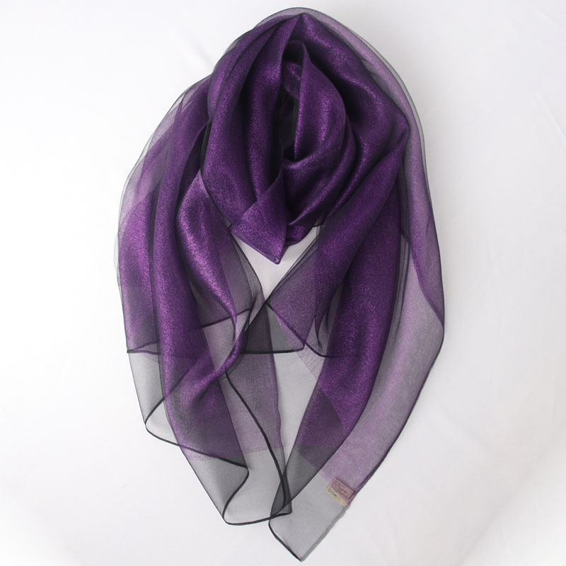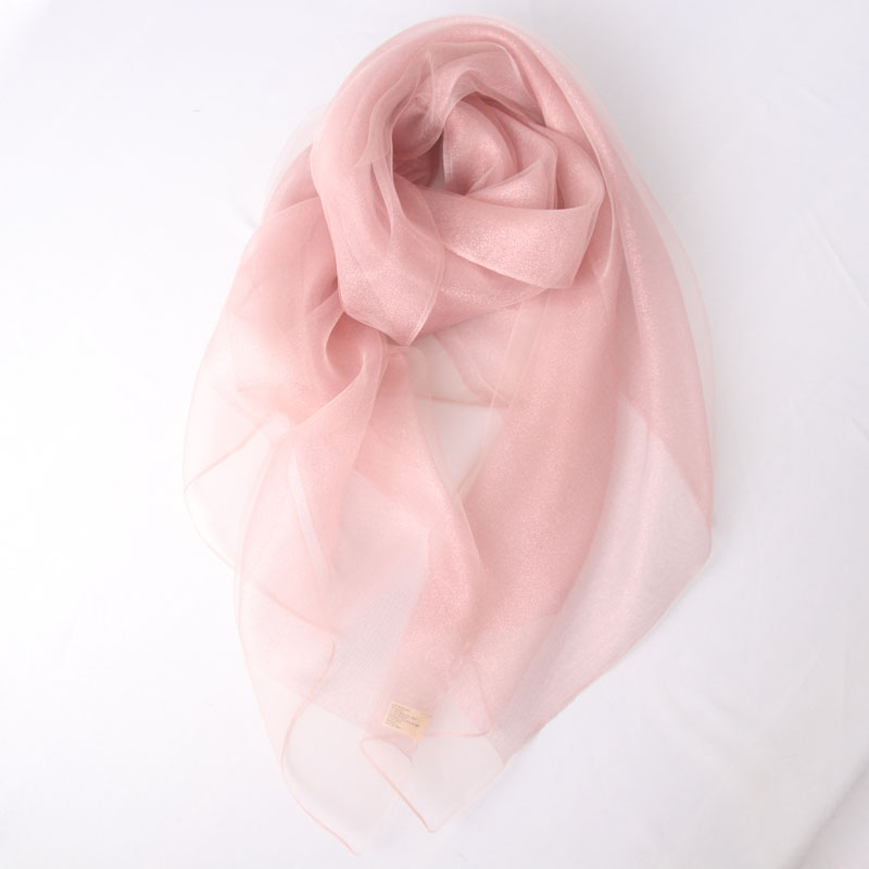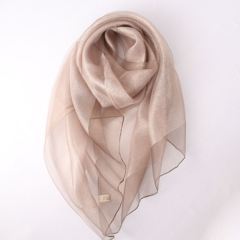 2024秋冬新款纯色丝巾双层金丝真丝百搭长款旗袍欧根纱披肩女围巾