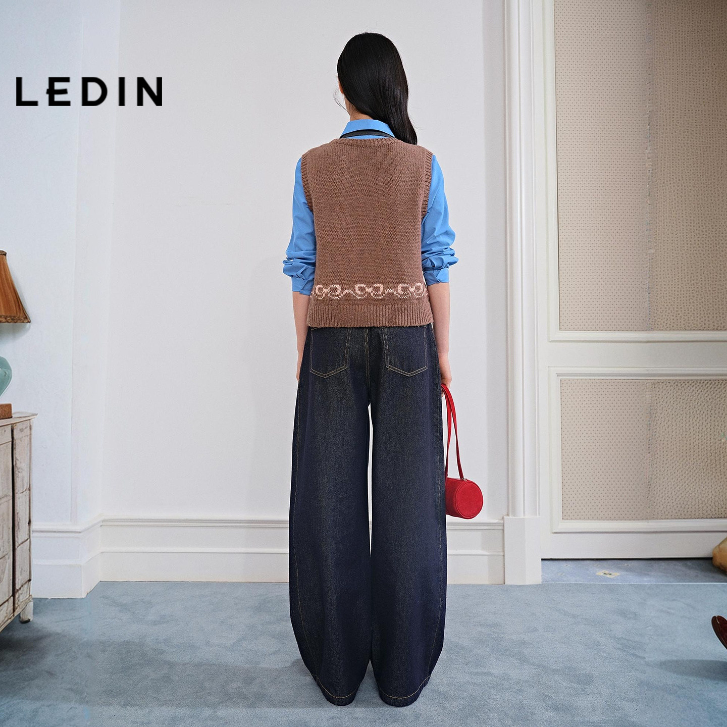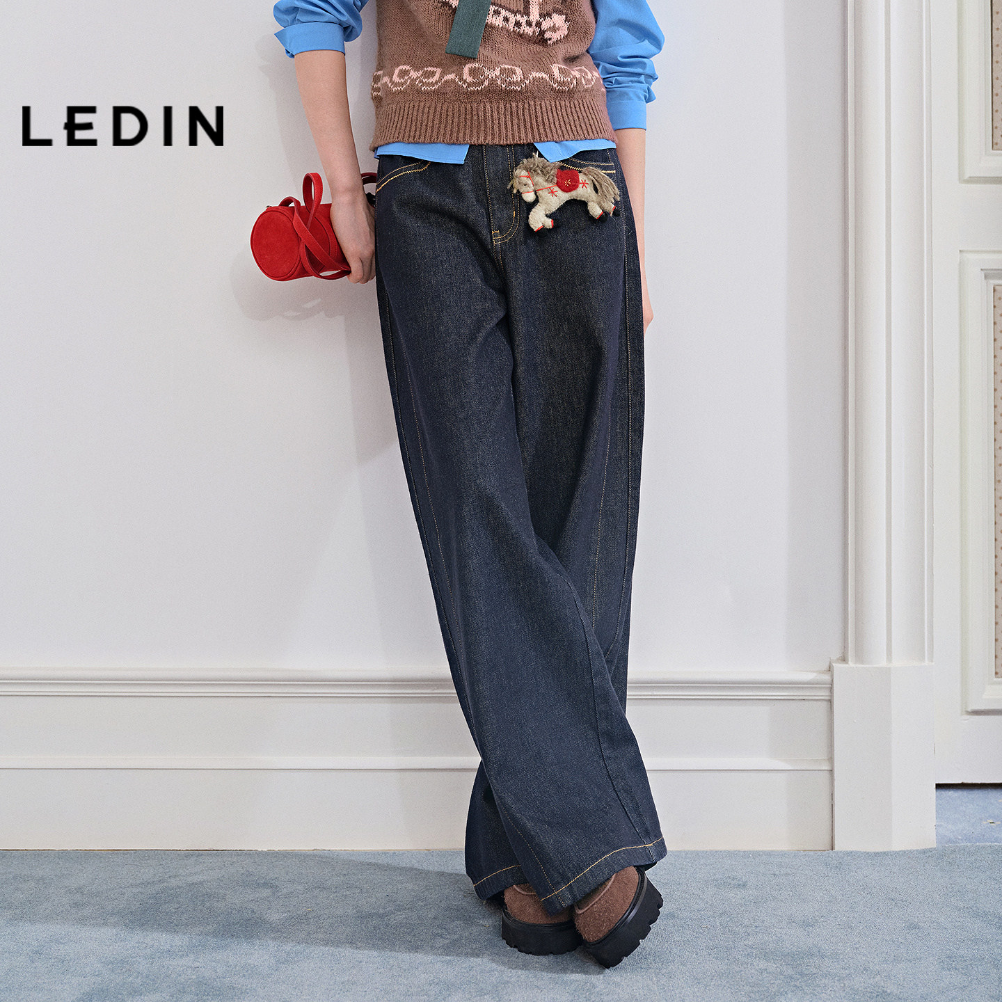 乐町经典原牛色牛仔裤26春季新款口袋撞边设计直筒裤宽松阔腿裤女