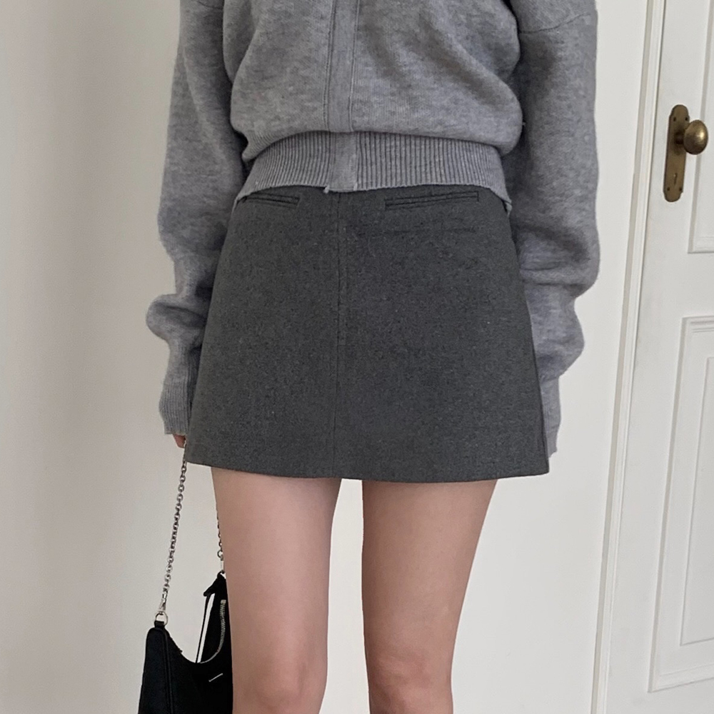灰色假口袋毛呢半身裙