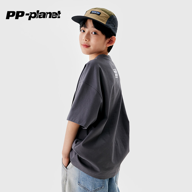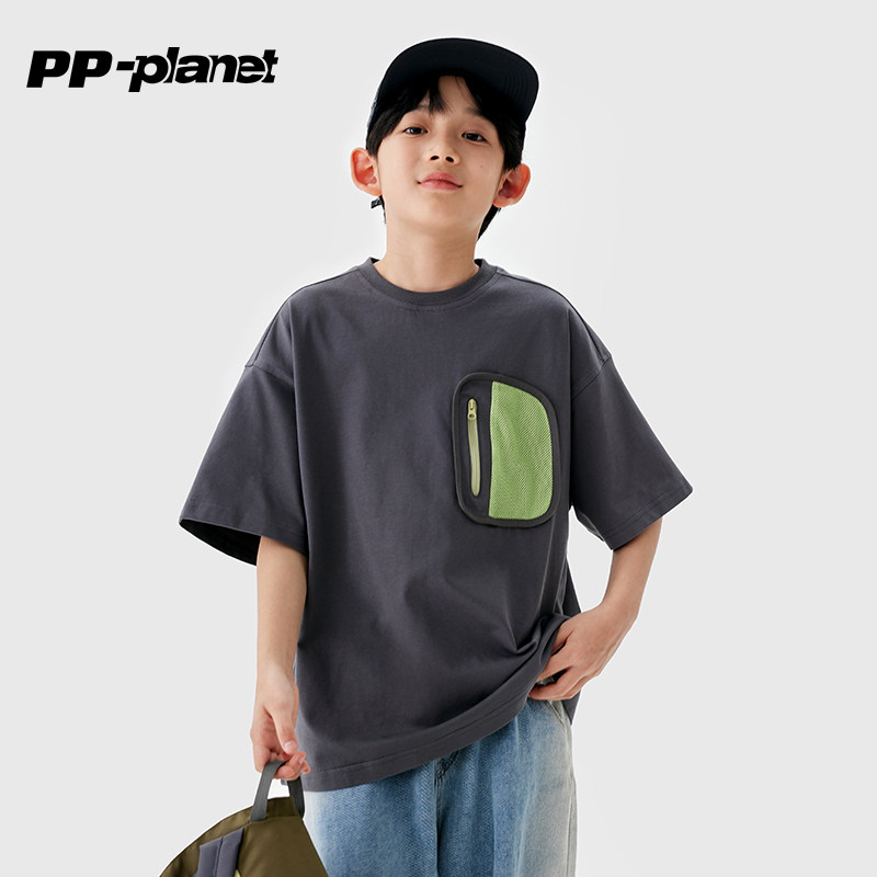 PP星球男童撞色口袋夏季短袖T恤儿童新款中大童洋气休闲上衣t