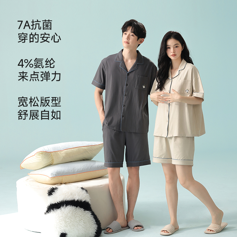 七色纺睡衣情侣款夏季纯棉短袖短裤套装2025新款7A抗菌男女家居服