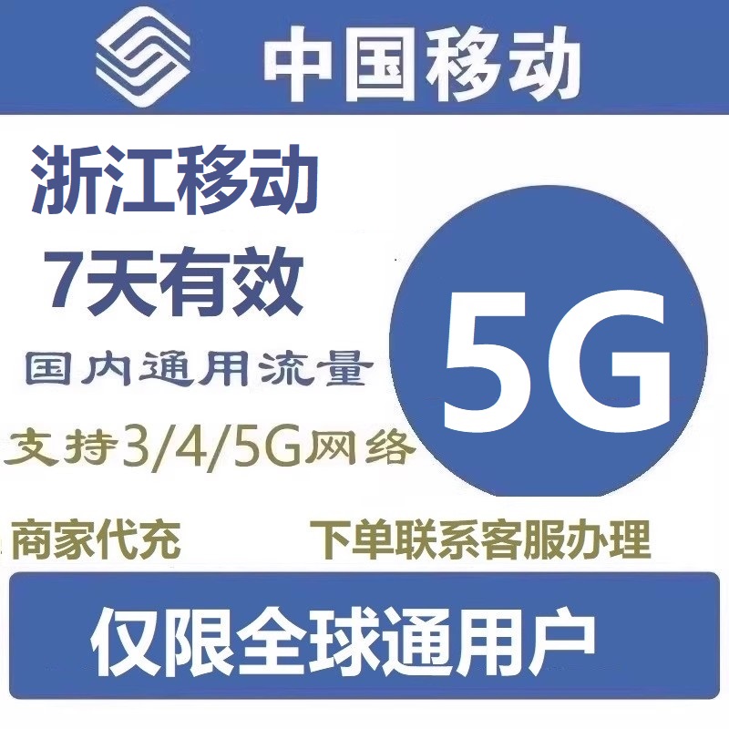 浙江移动流量充值5G加油包7天有效流量包手机流量全球通4G5G可叠
