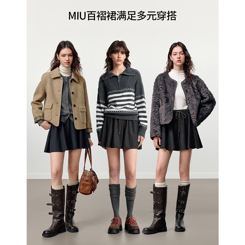 KBNE法式黑色高腰毛呢半身裙女2025冬季新款花苞裙小个子百褶裙子