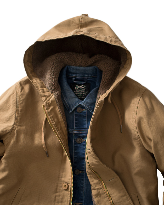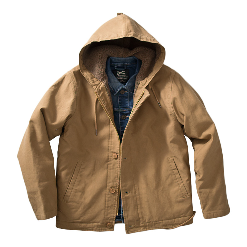 复古阿美咔叽复刻N-1连帽甲板服夹克 加厚羊羔绒工装棉衣男外套