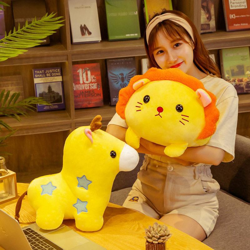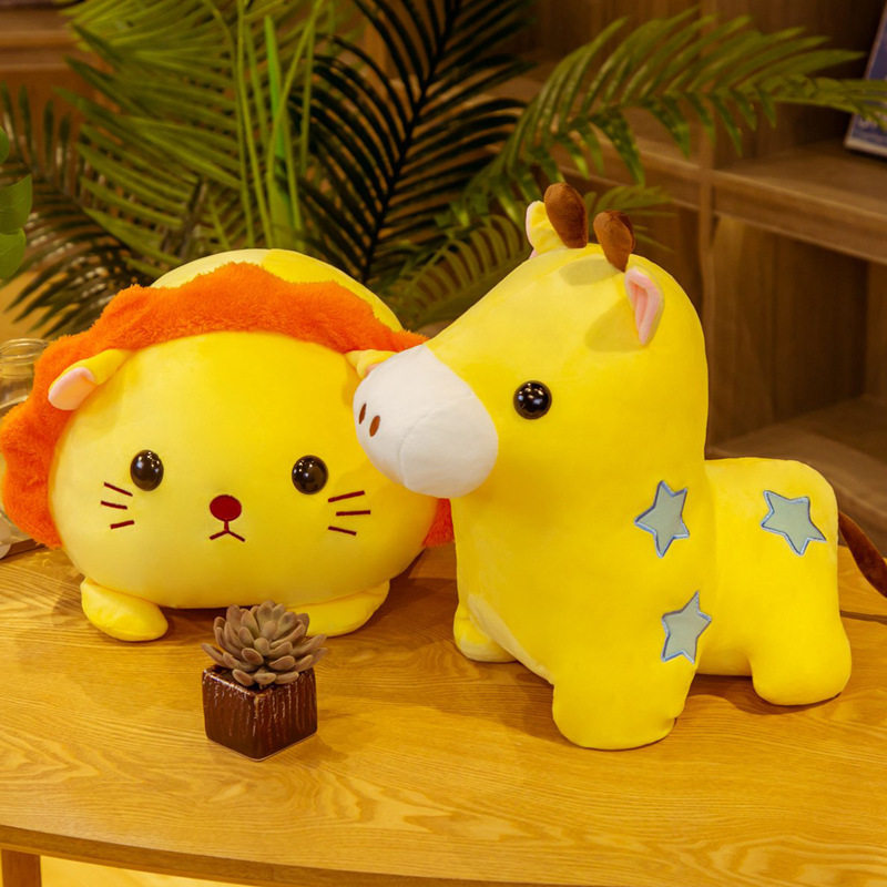 INS网红 可爱 动物园 太阳花狮子 长颈鹿毛绒玩具 公仔 抱枕 娃娃