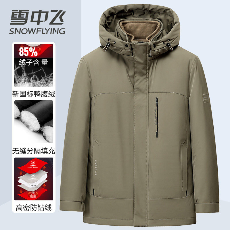 雪中飞羽绒服男款冬季外套连帽加厚内胆可脱卸鸭一衣三穿鸭绒服装