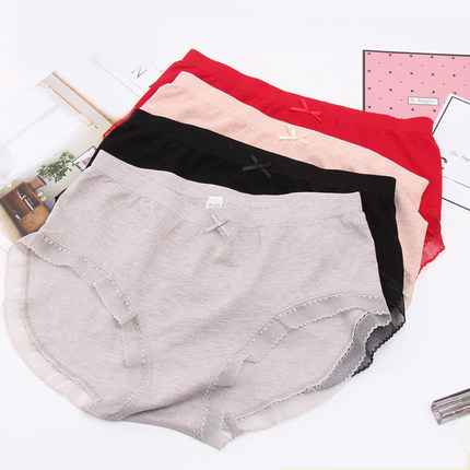 大码中腰莫代尔内裤女无痕蕾丝边