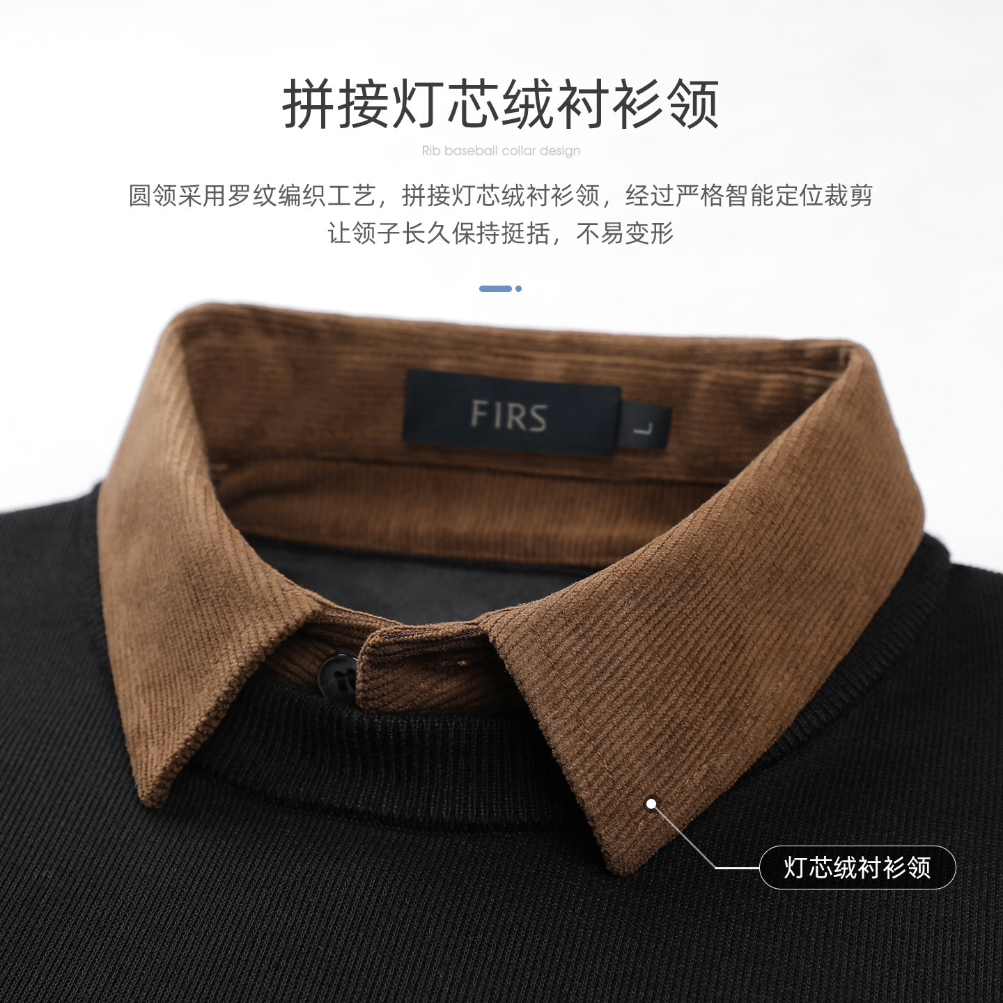 【加绒】杉杉假两件针织衫男2025冬季新款拼接灯芯绒保暖撞色毛衣