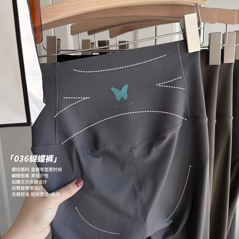 蝴蝶裤女薄款春夏新款高腰收腹提臀瑜伽裤紧身螺纹鲨鱼裤鱼骨