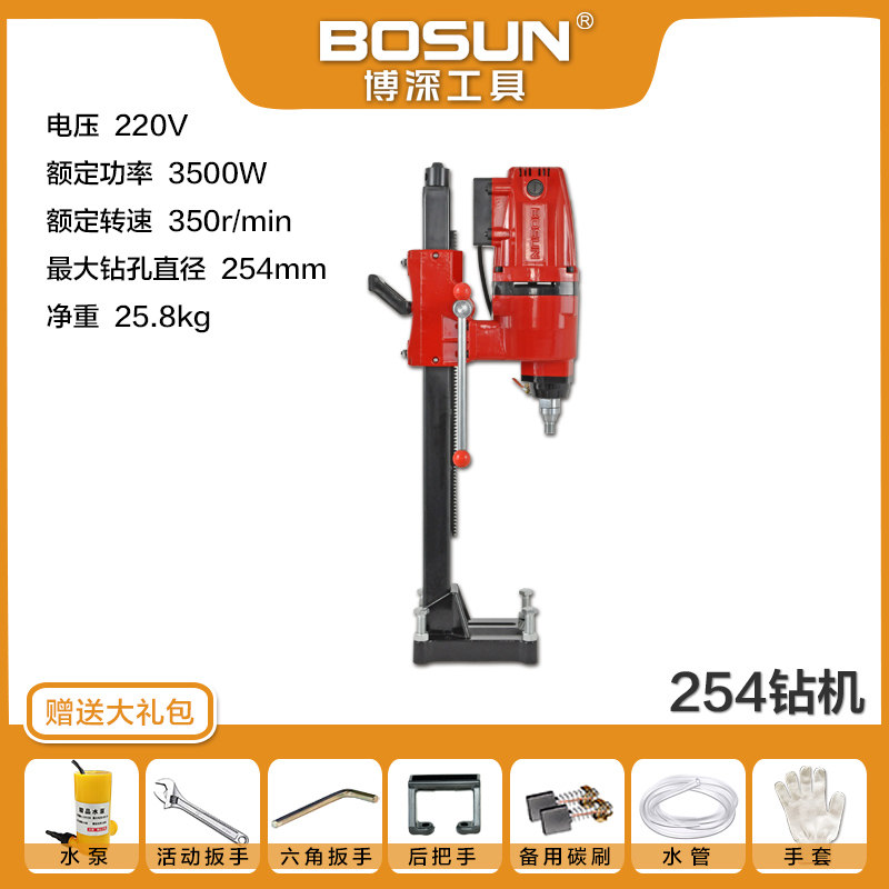 博深水钻机台式钻孔机254混泥土打孔钻眼机大功率空调开孔电钻
