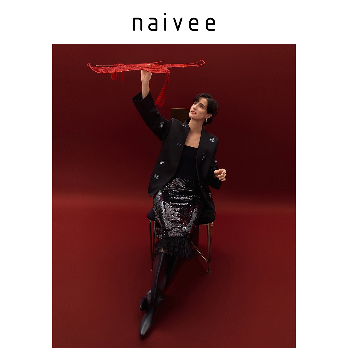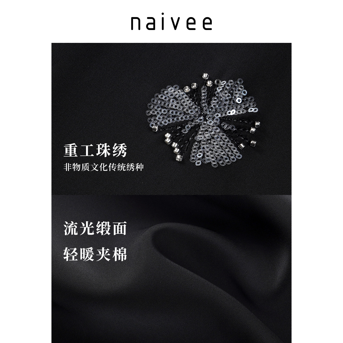 钉珠刺绣棉服naivee纳薇新中式