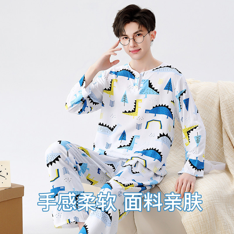 青少年棉绸男童睡衣夏季新款大童初高中学生长袖人造棉男士家居服