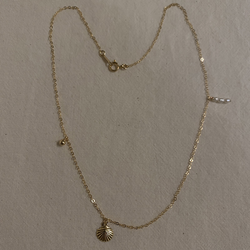 poluoguizu原创美国进口14k包金精致小贝壳天然珍珠高级锁骨链