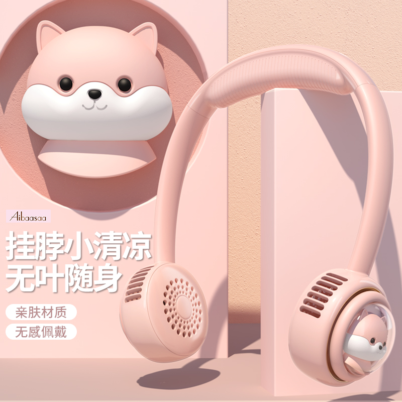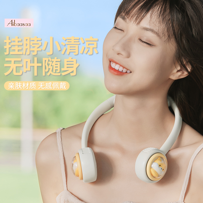 挂脖小风扇usb便携式可充电扇小型无叶懒人挂脖子挂颈学生可爱迷你随身大风力超静音女生夏天小空调制冷降温