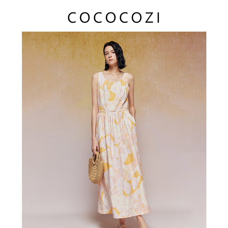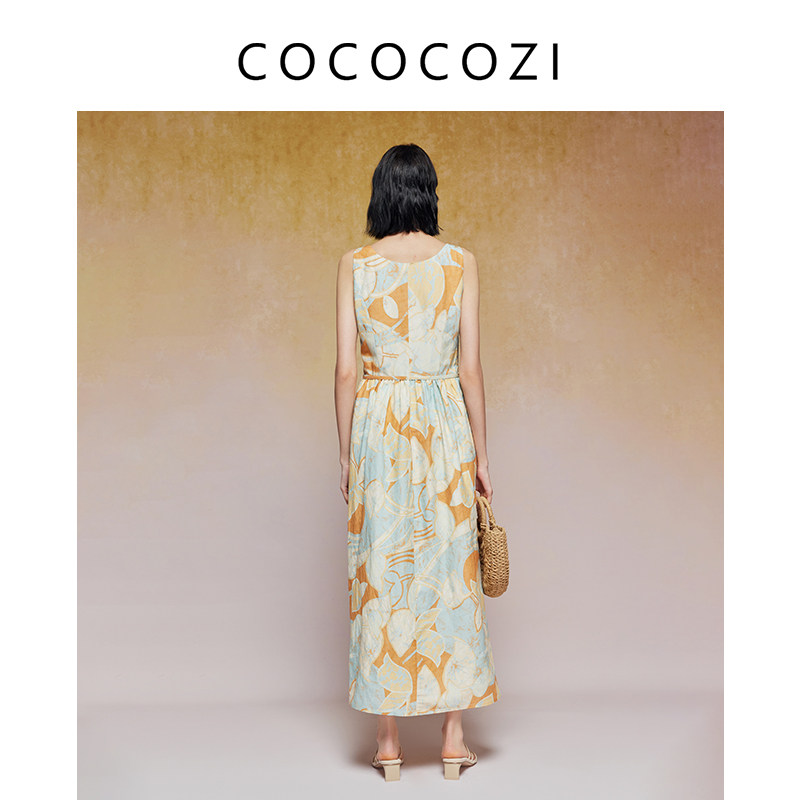 COCOCOZI春夏季款式提花桑蚕丝气质优雅真丝女士连衣裙241CO050L