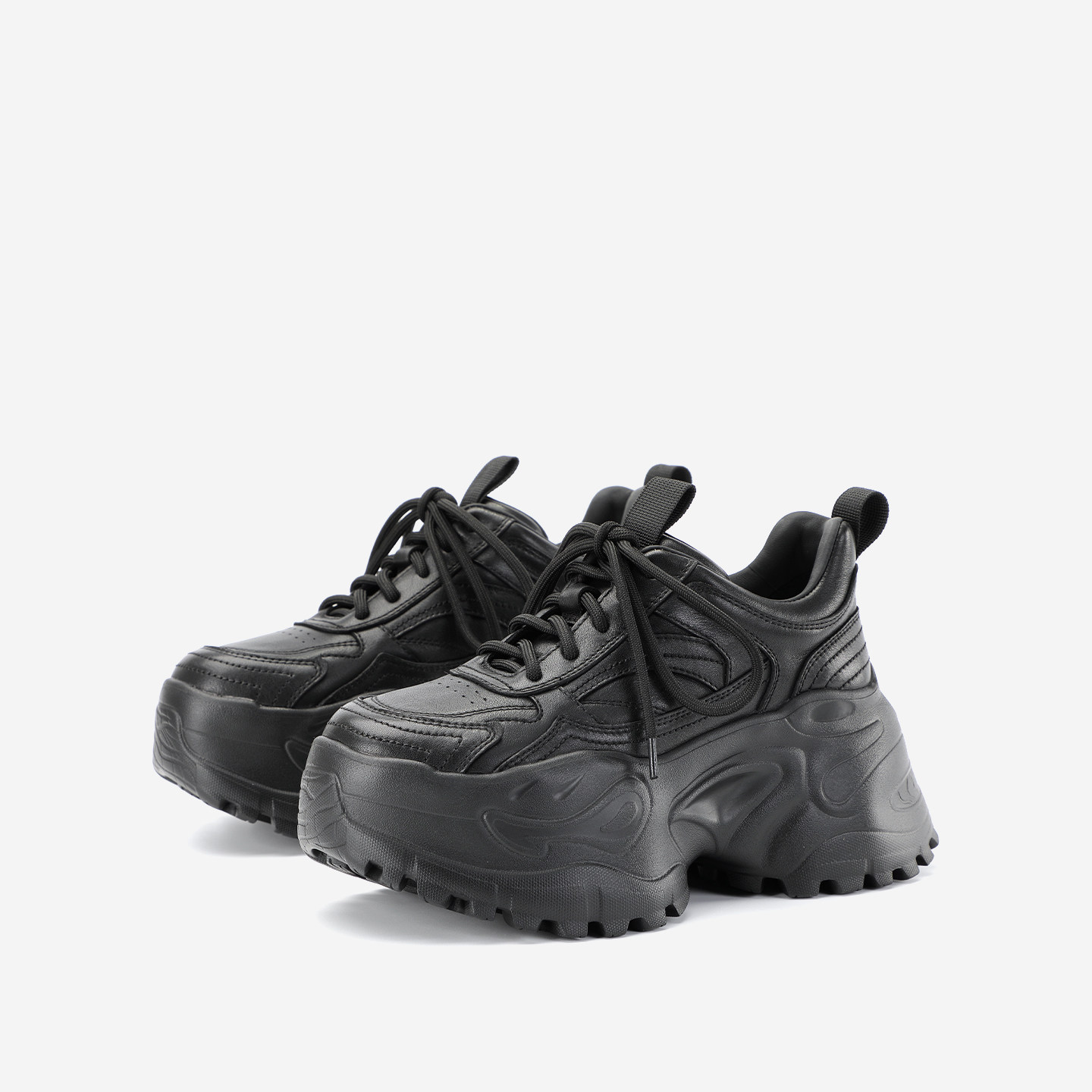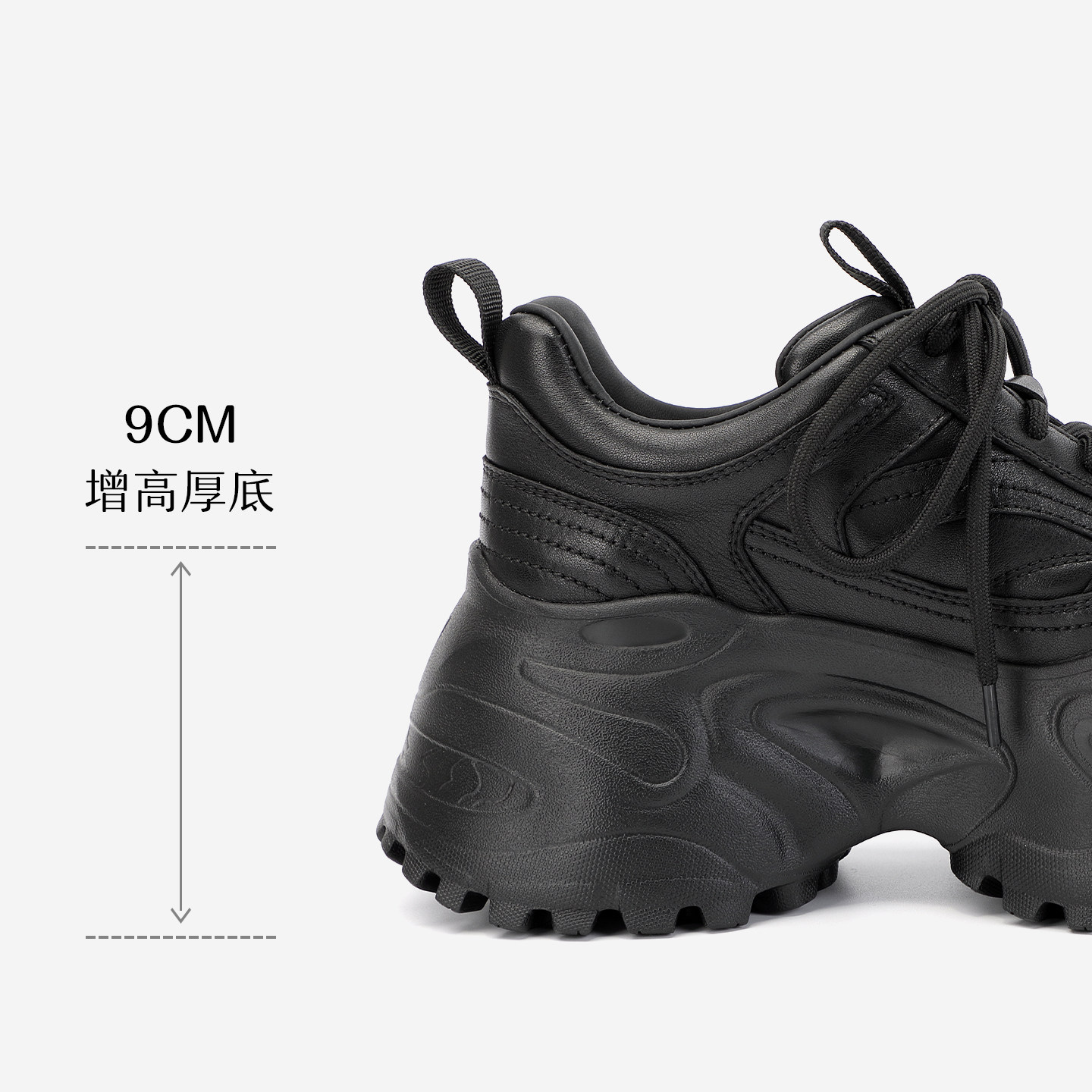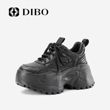 DIBO碲铂商场同款2025年秋季新款百搭增高厚底黑色真皮休闲鞋女