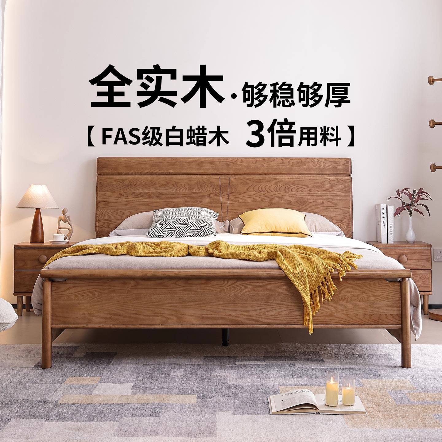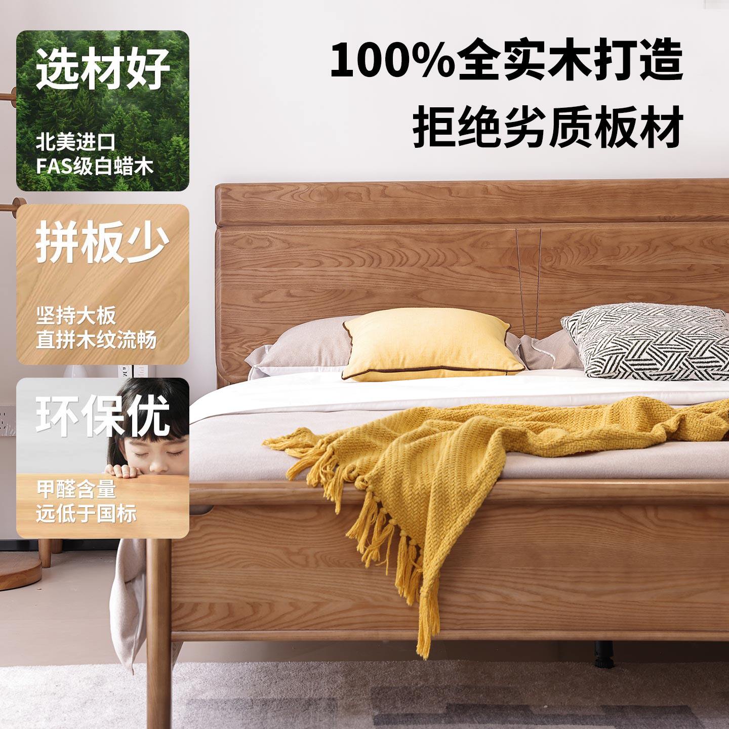一林半舍新中式实木床现代简约白蜡木箱体床主卧室原木1.8m双人床