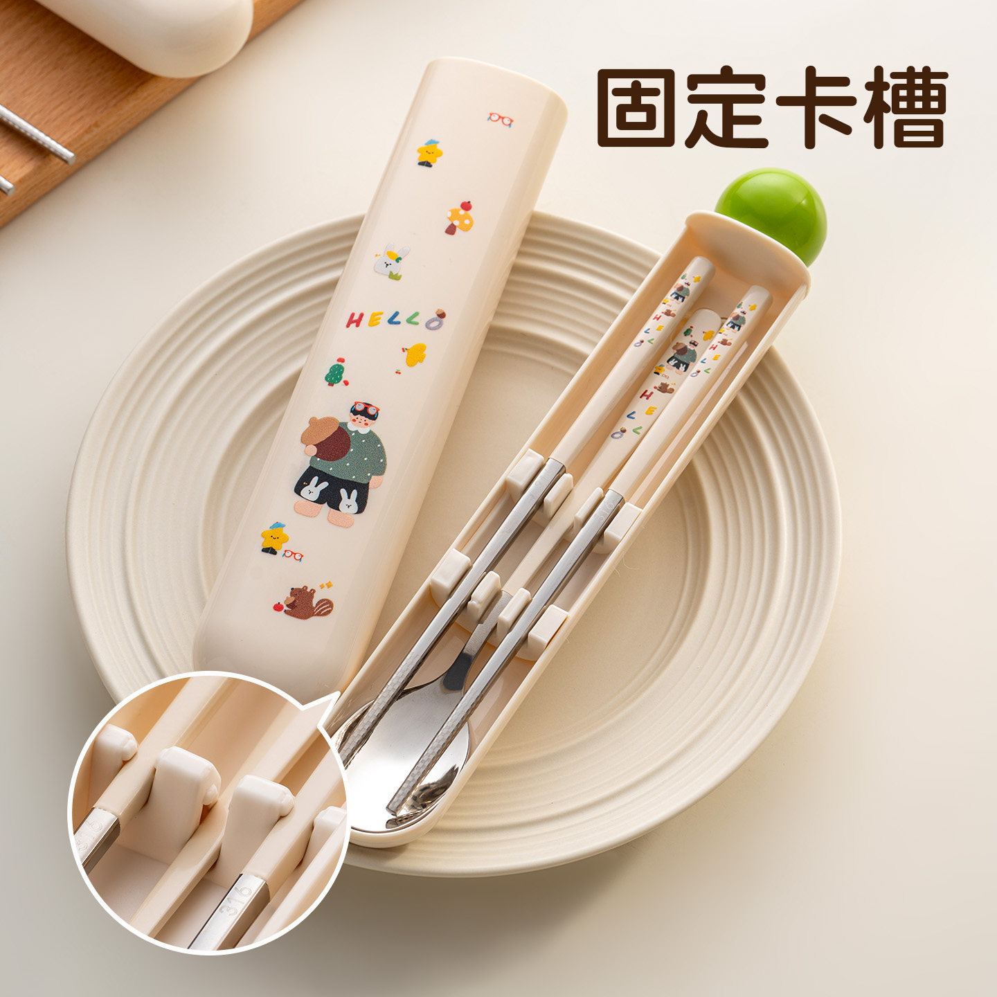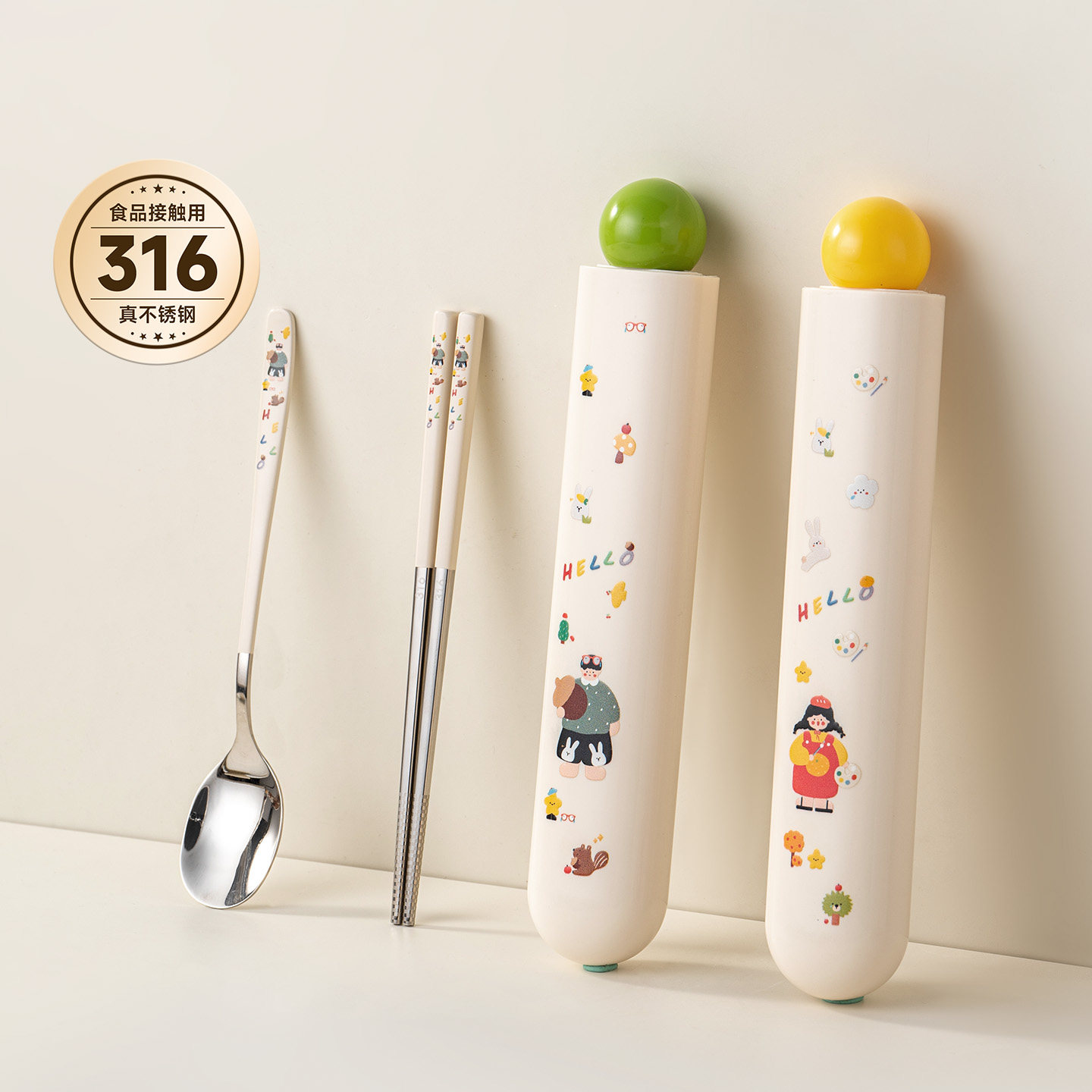 onlycook学生儿童便携餐具316不锈钢筷子勺子套装外出携带收纳盒