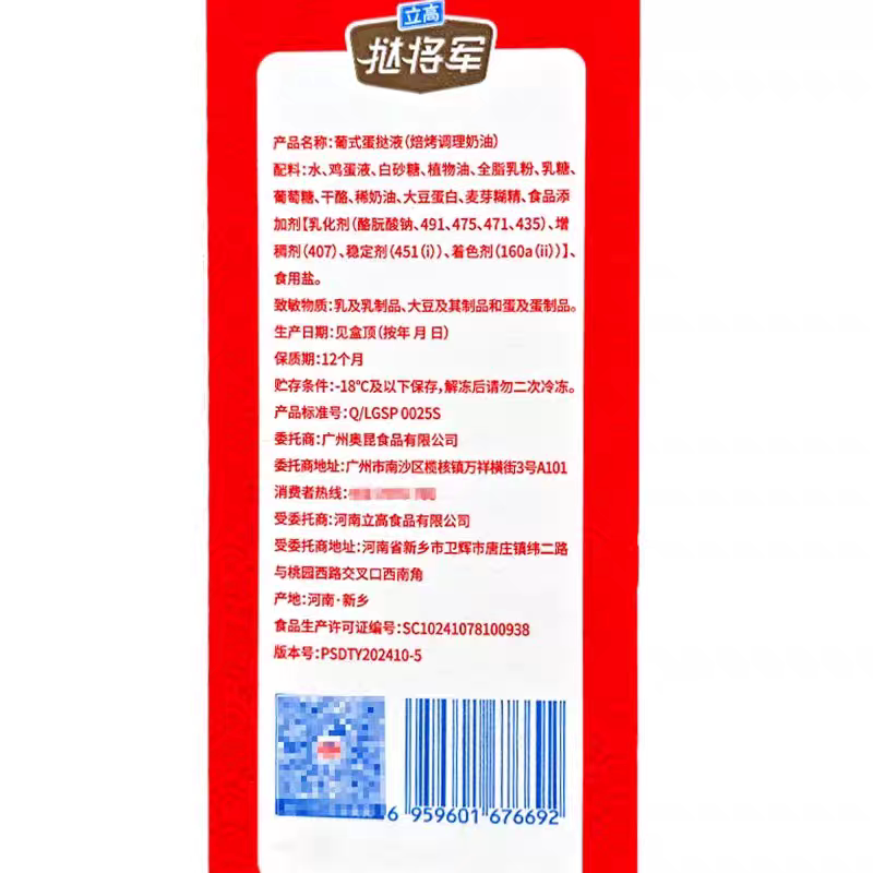 立高挞将军葡式蛋挞液 907g*12奥昆耐焙烤奶油家用蛋挞皮可做蛋挞