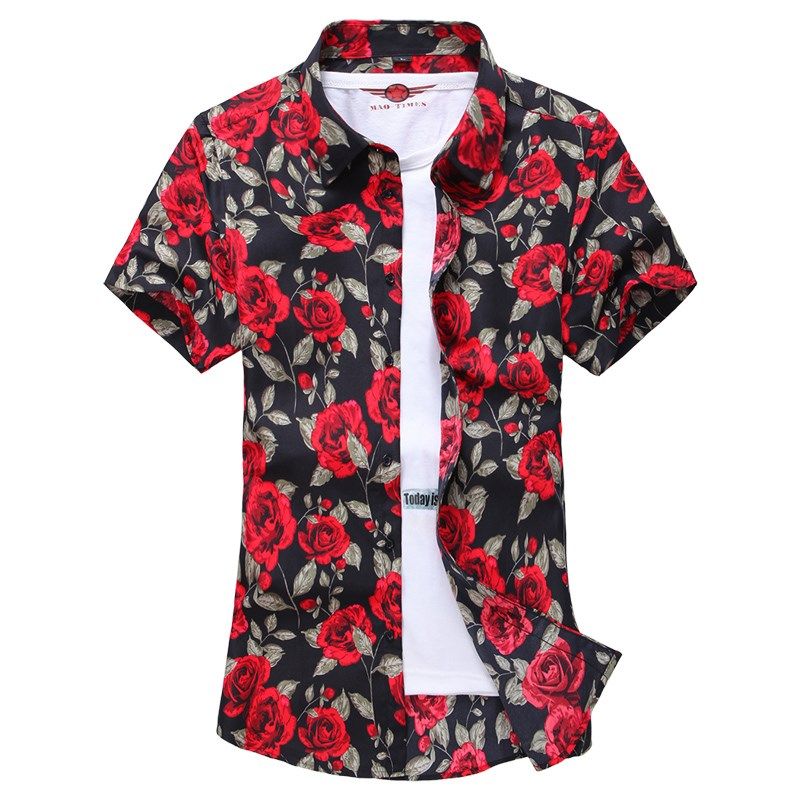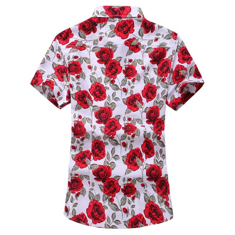 夏季男薄款时尚印花短袖衬衫丝光棉旅游休闲海滩沙滩衬衣胖子男装